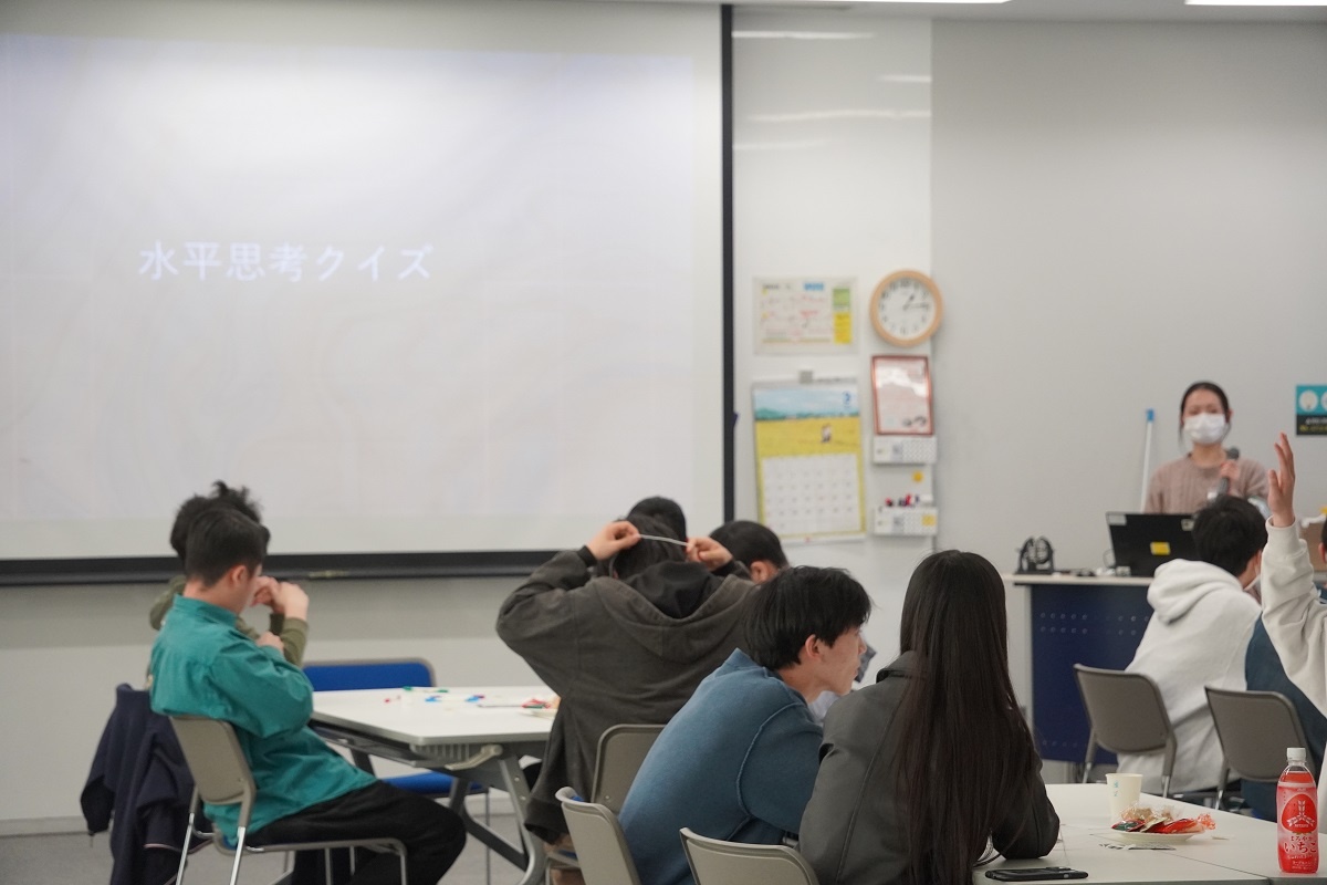 今日は午後、ピア・サポート団体(CORE)が主催の新入生歓迎会が開催されました。 新入生が順調なスタートを切られるよう、新入生同士や在校生・修了生と交流する機会を設ける取り組みで、今年で5年目となりました。新入生23名が参加し、水平思考クイズ、人狼ゲーム、ビンゴゲームなどを行ったあと、自由に質問したりする姿が見られ、新入生の入学前の不安を解消する場となりました。