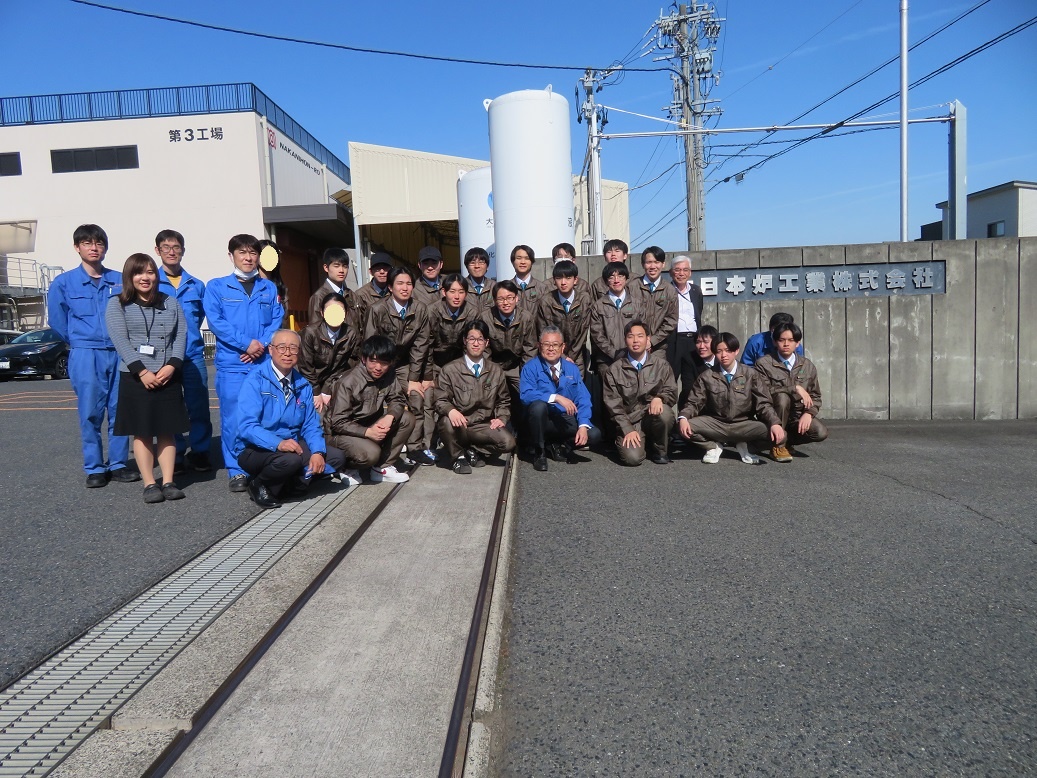 今日は2年生がコース実習でした。今日は全コース工場見学で、「中日本炉工業株式会社」と「オークマ株式会社」へ行かせていただきました。