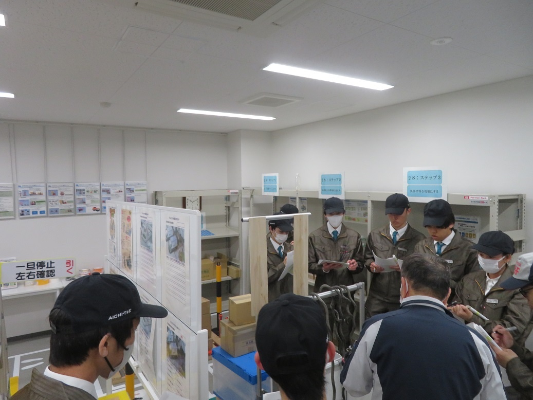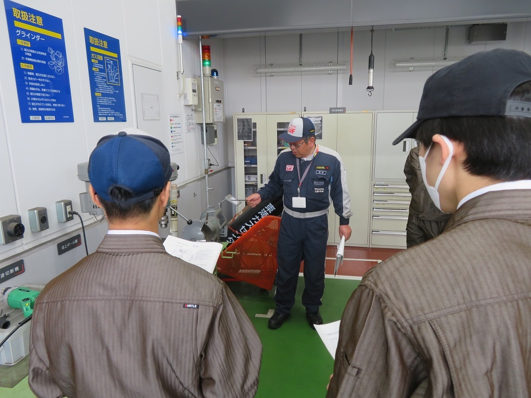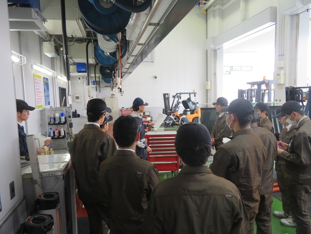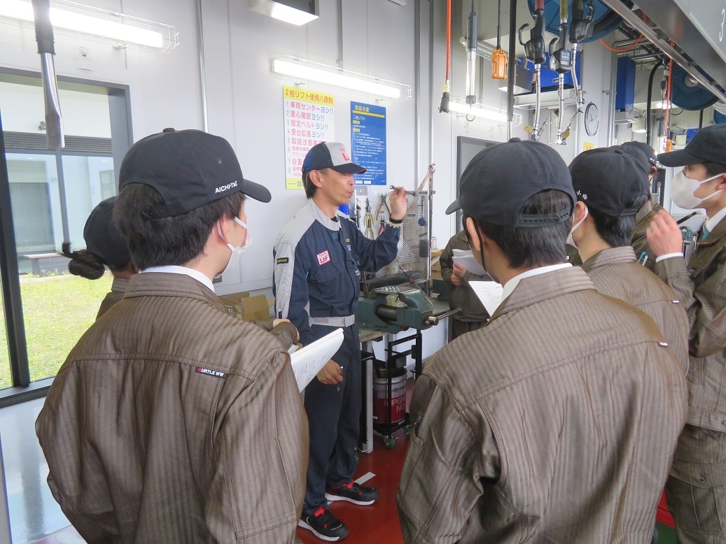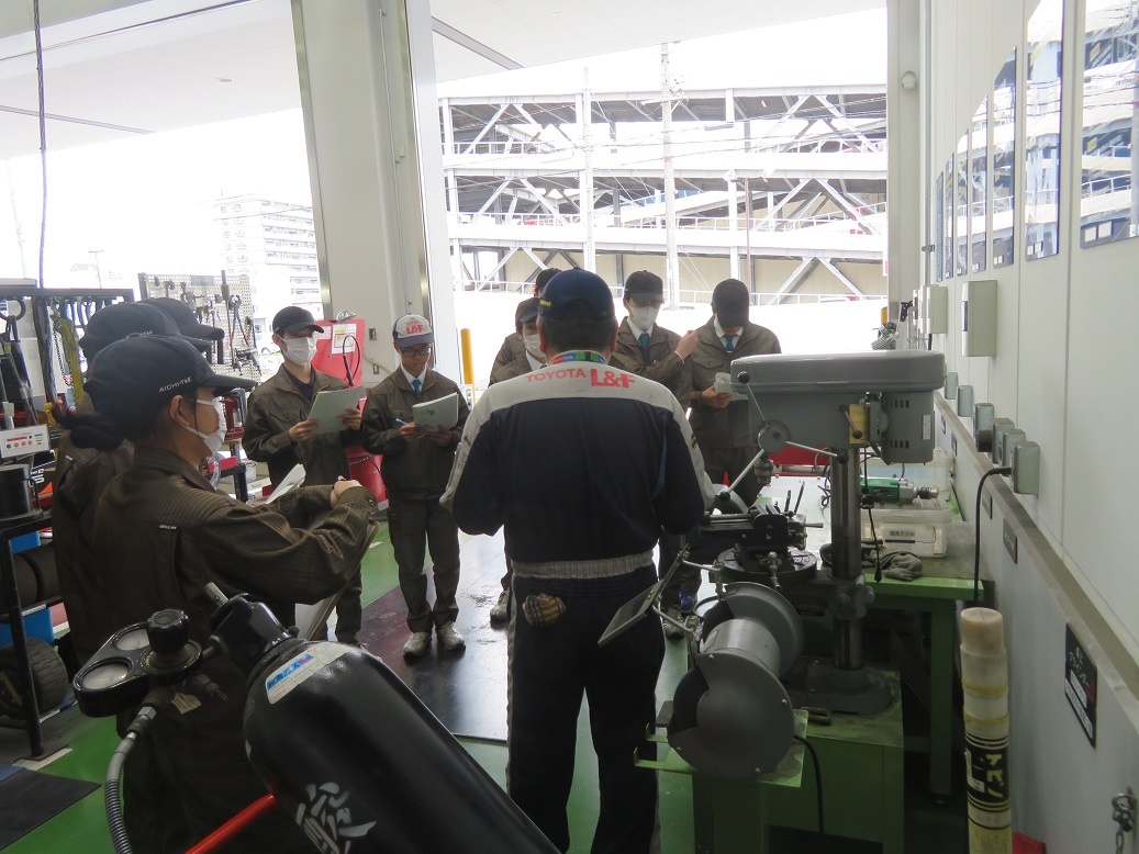 今日は1年生がコース実習でした。今日は全コース安全教育で、「トヨタL&F中部株式会社」へ行かせていただきました。危険予知訓練(KYT)から工作機械の安全作業、手工具の安全な使い方を学び、安全教育について深く学ぶことができました。