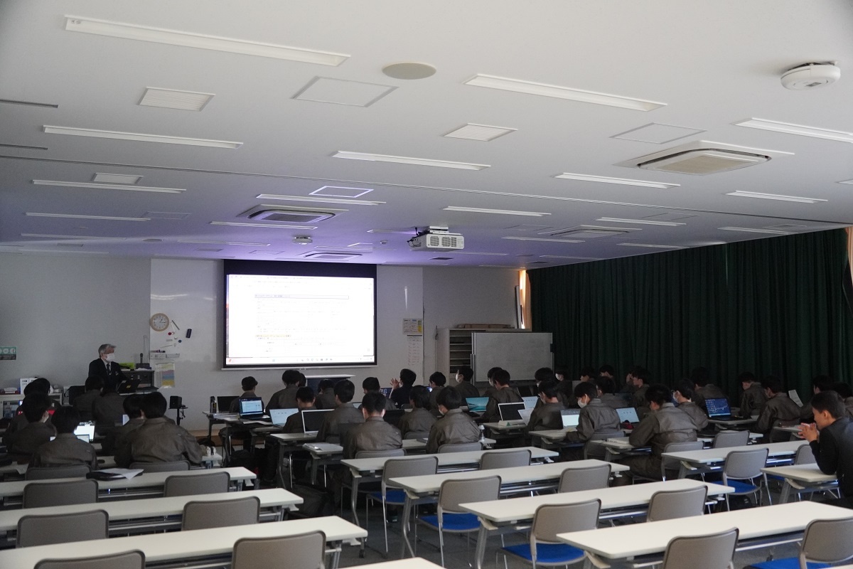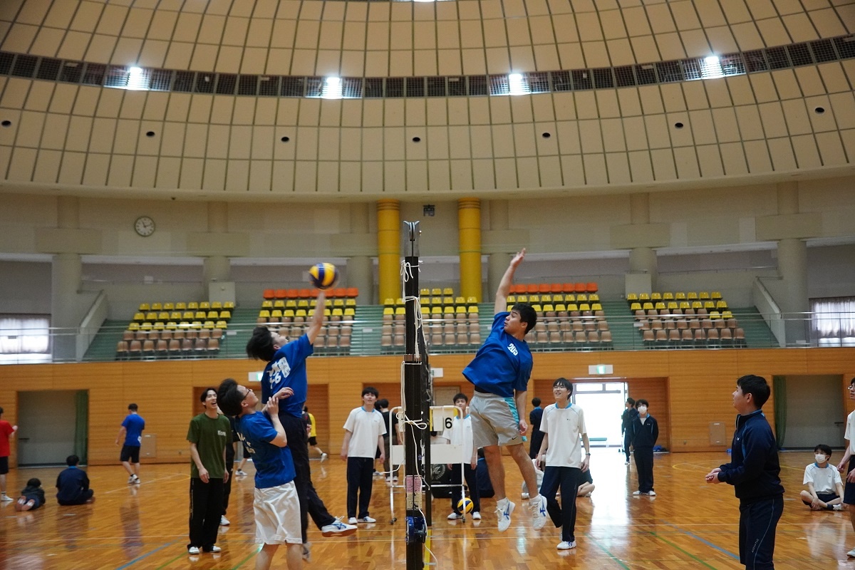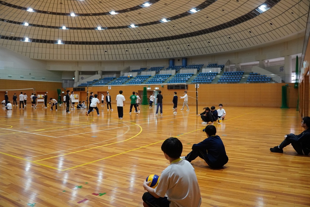 今日の体育実技はバレーボールに取り組みました。また3限「総合演習」では、1年生はMicrosoft Office、2年生は英語プレゼンテーションに取り組みました。