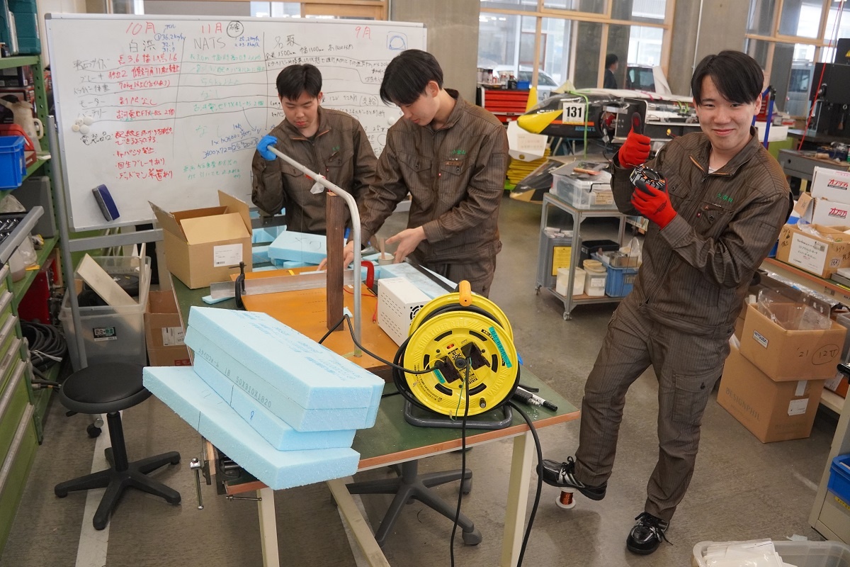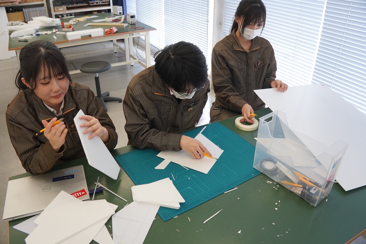 今日は2年生が総合実習でした。「エコモビリティ技術の研究と実践Ⅱ」班は、10月の大会出場を目標に、新しい機体のアッパーカウル製作に取り組んでいます。