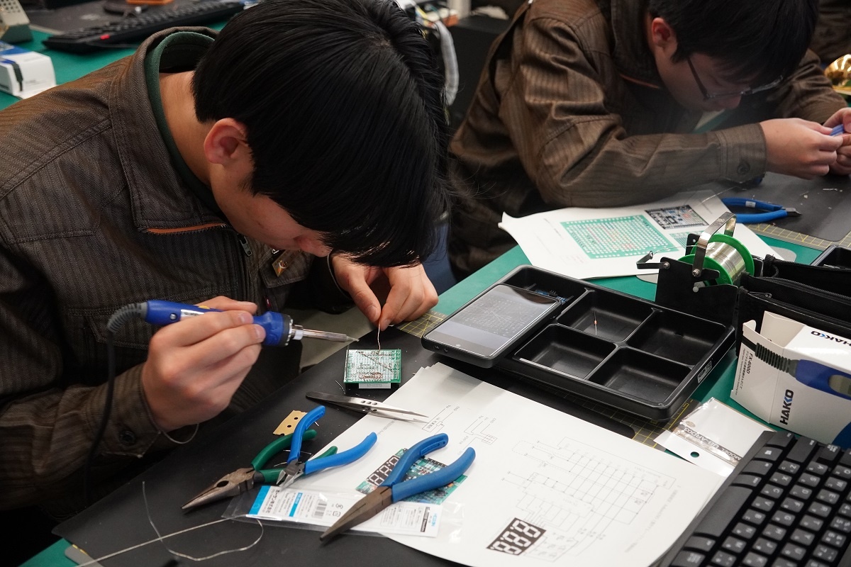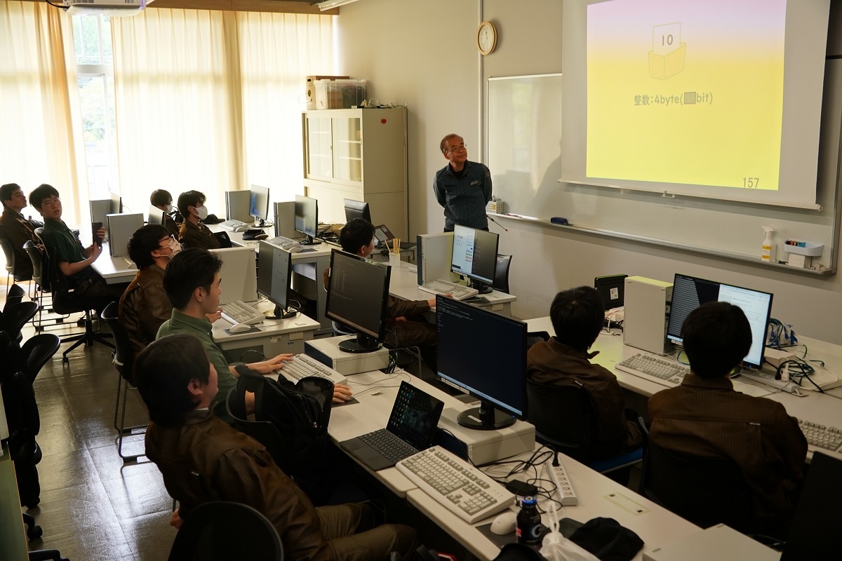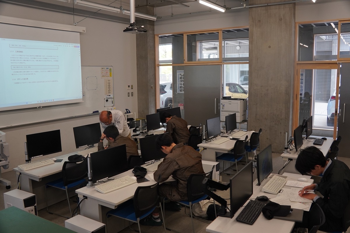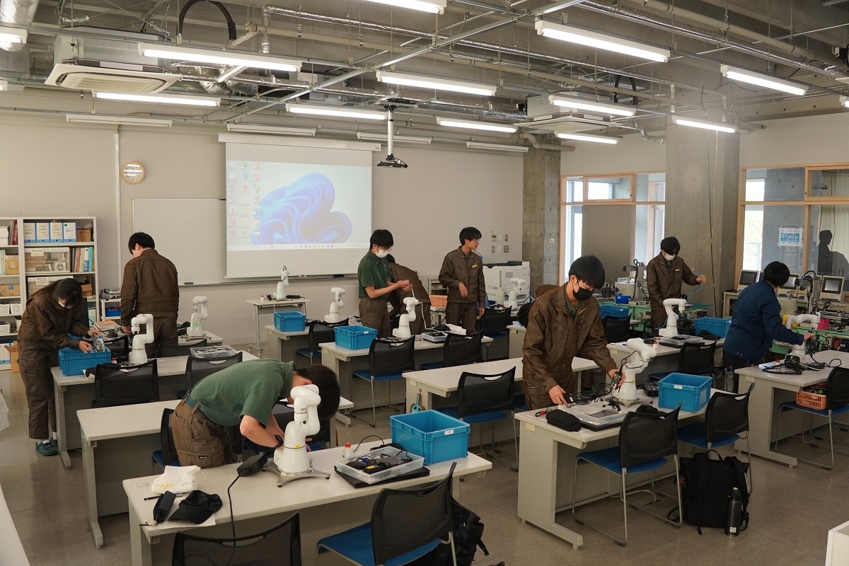 今日は2年生がコース実習でした。自動車・航空コースは「ロボット特別教育」、電気・制御コースは「機械基礎実習(ロボドリル・フライス・レーザー加工)」、情報・ITコースは「機械学習」、電子・ロボットコースは「マイコンと周辺回路」に取り組みました。