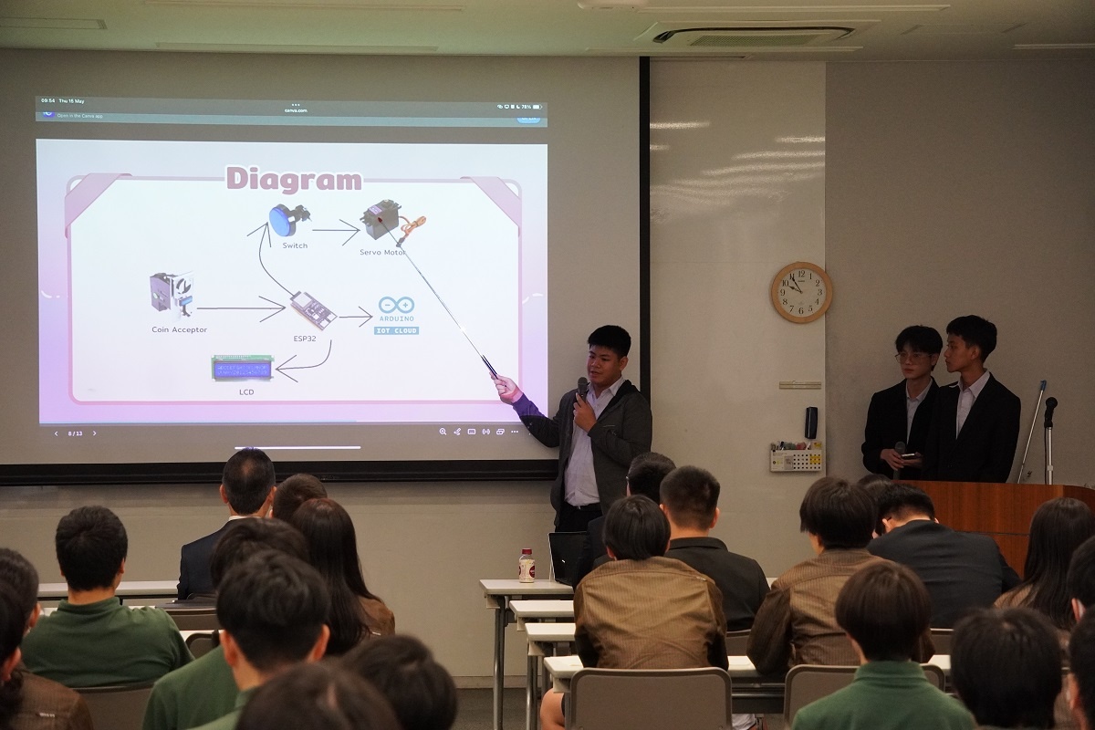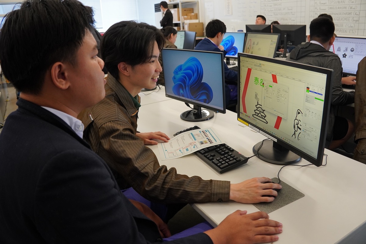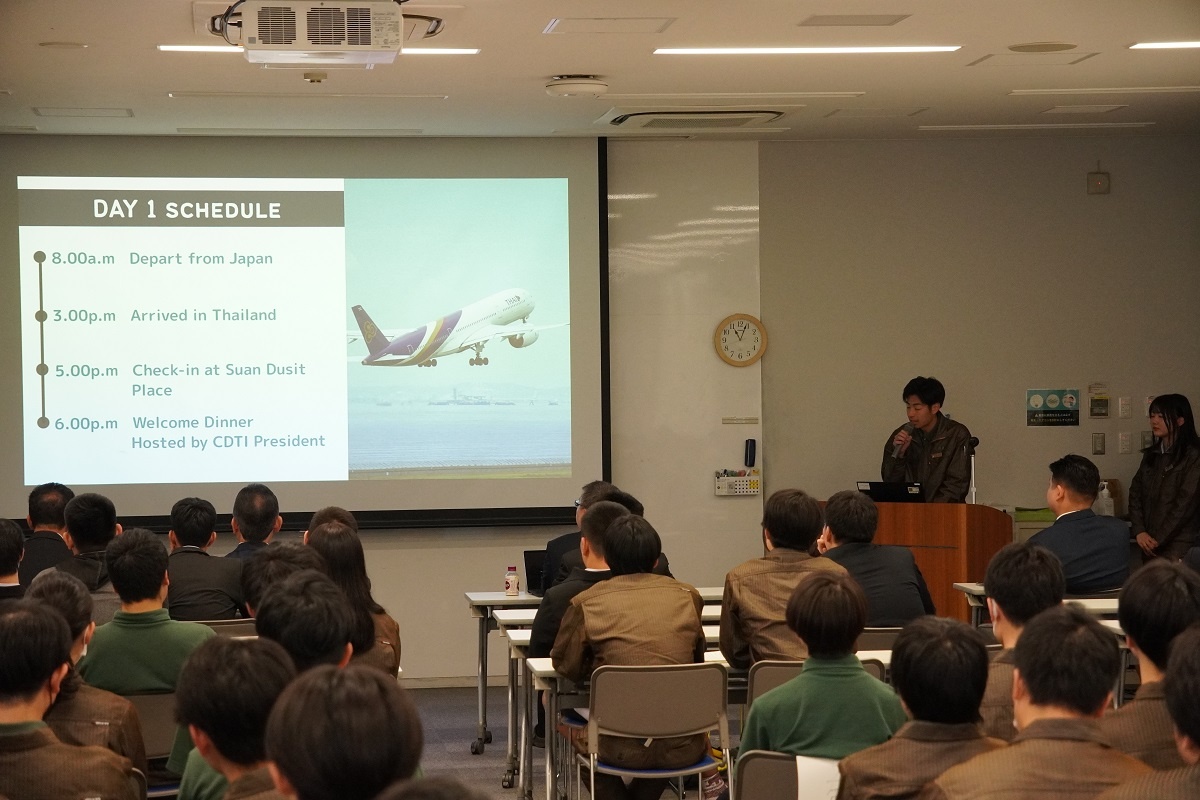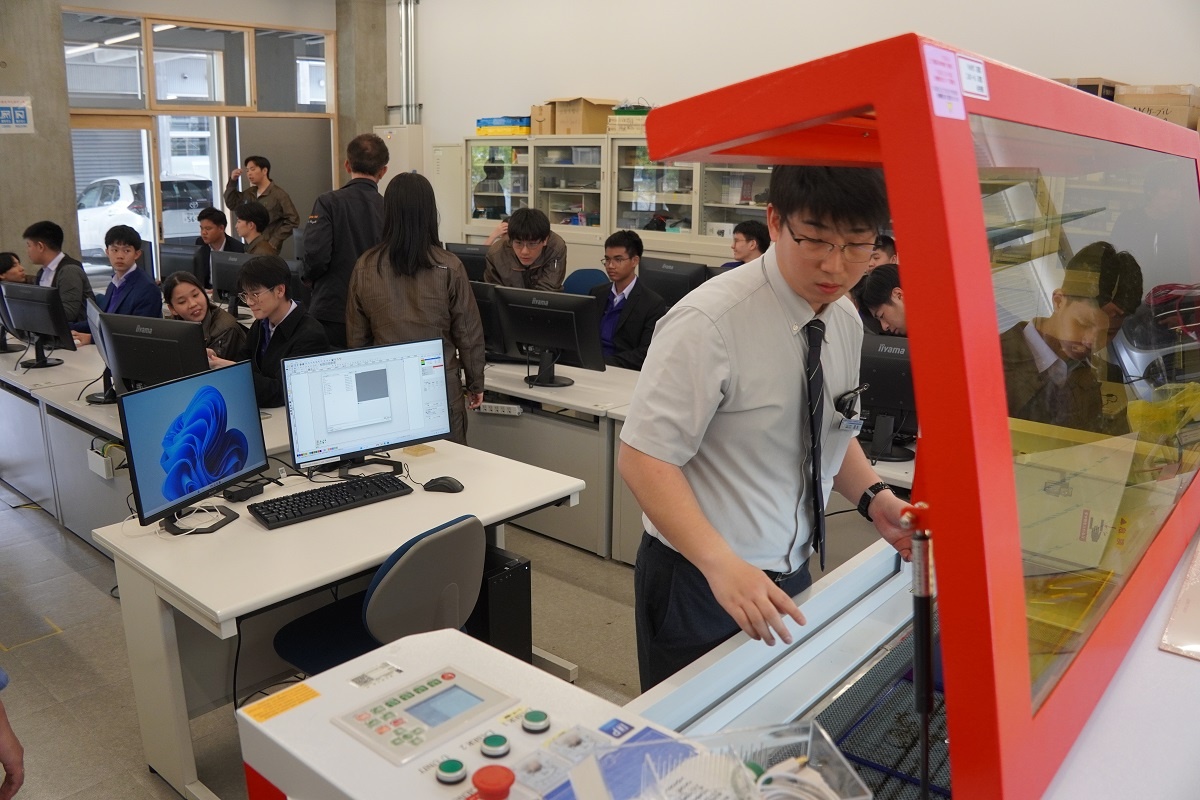今日はタイ王国チットラダー工科大学(CDTI)の皆さんと専攻科にて「English Presentation」を行いました。CDTIメンバーと、専攻科メンバー各自の取組を発表しました。 また専攻科のレーザー加工機を使ったアクリルキーホルダー作り、名城大学 飯島教授による特別授業にも取り組みました。