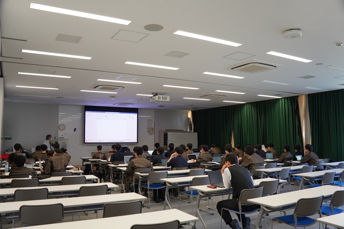 今日の体育は本科グラウンドにてサッカーに取り組みました。 また午後からは、1年生は「Word」「安全工学」、2年生は「英語プレゼンテーション」「電子回路Ⅰ/航空工学Ⅰ/デジタル回路Ⅱ」に取り組みました。