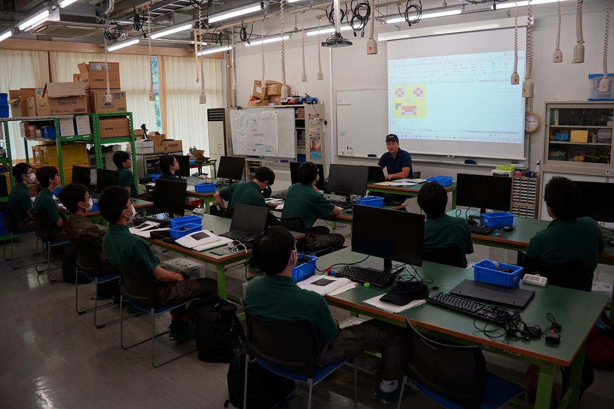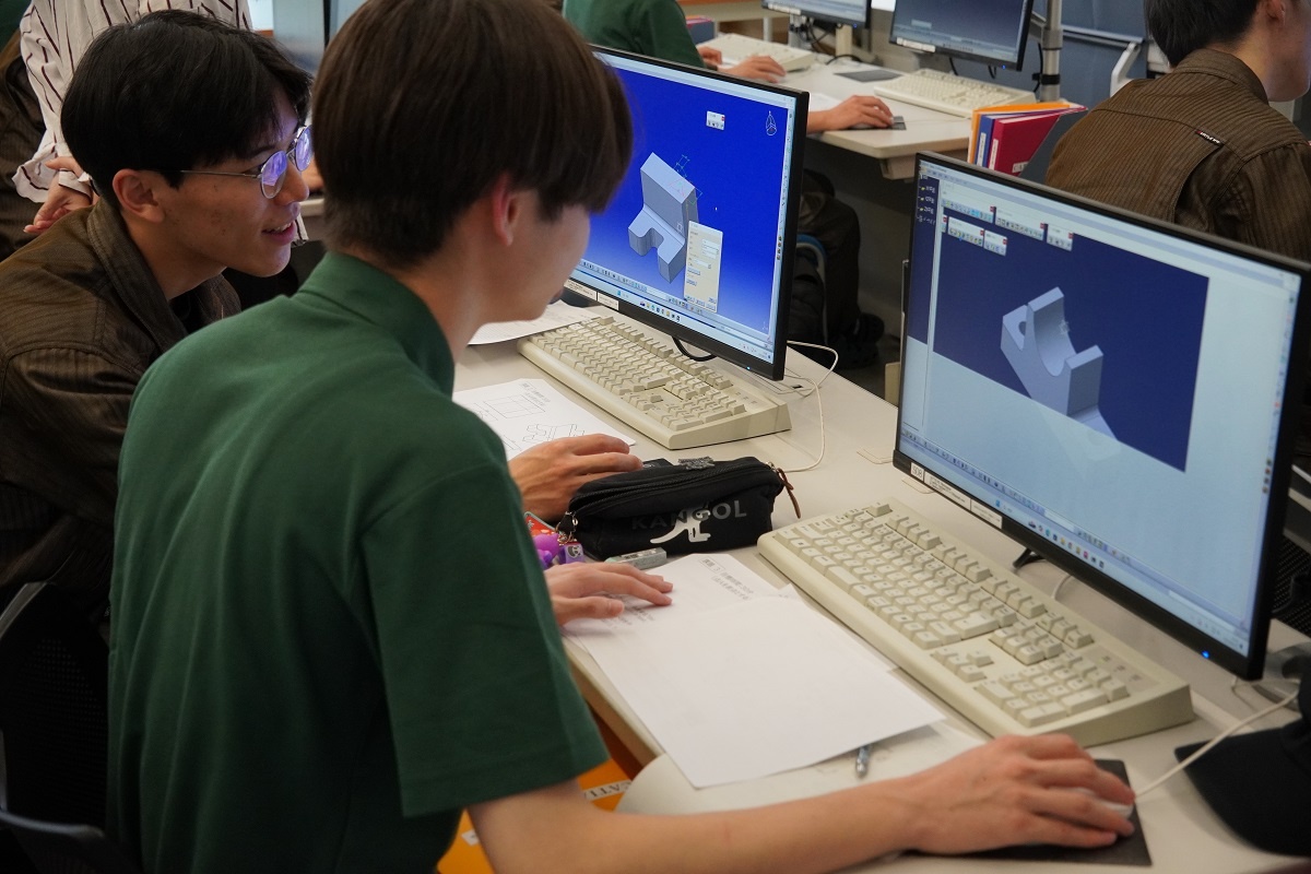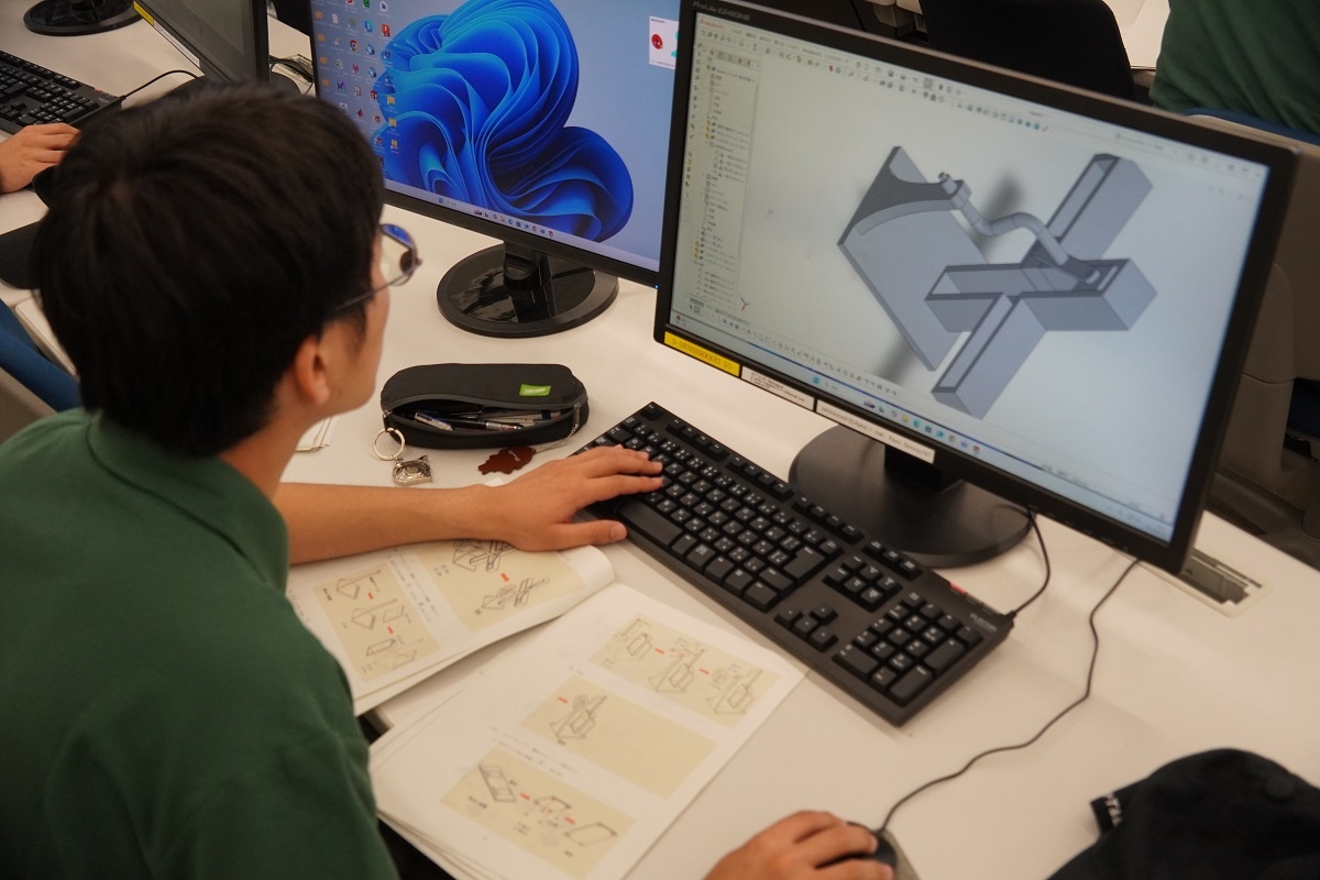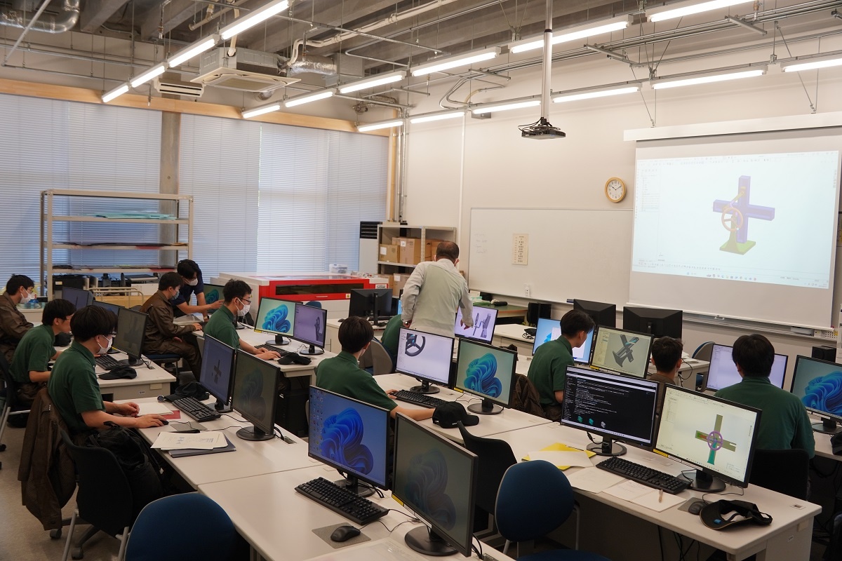 今日はコース実習(1年生)でした。自動車・航空コースは「機械技術実習2」、電気・制御コースは「CAD(SW)」、情報・ITコース「Pythonプログラム基礎」、電子・ロボットコースは「CAD(CT)」に取り組みました。
