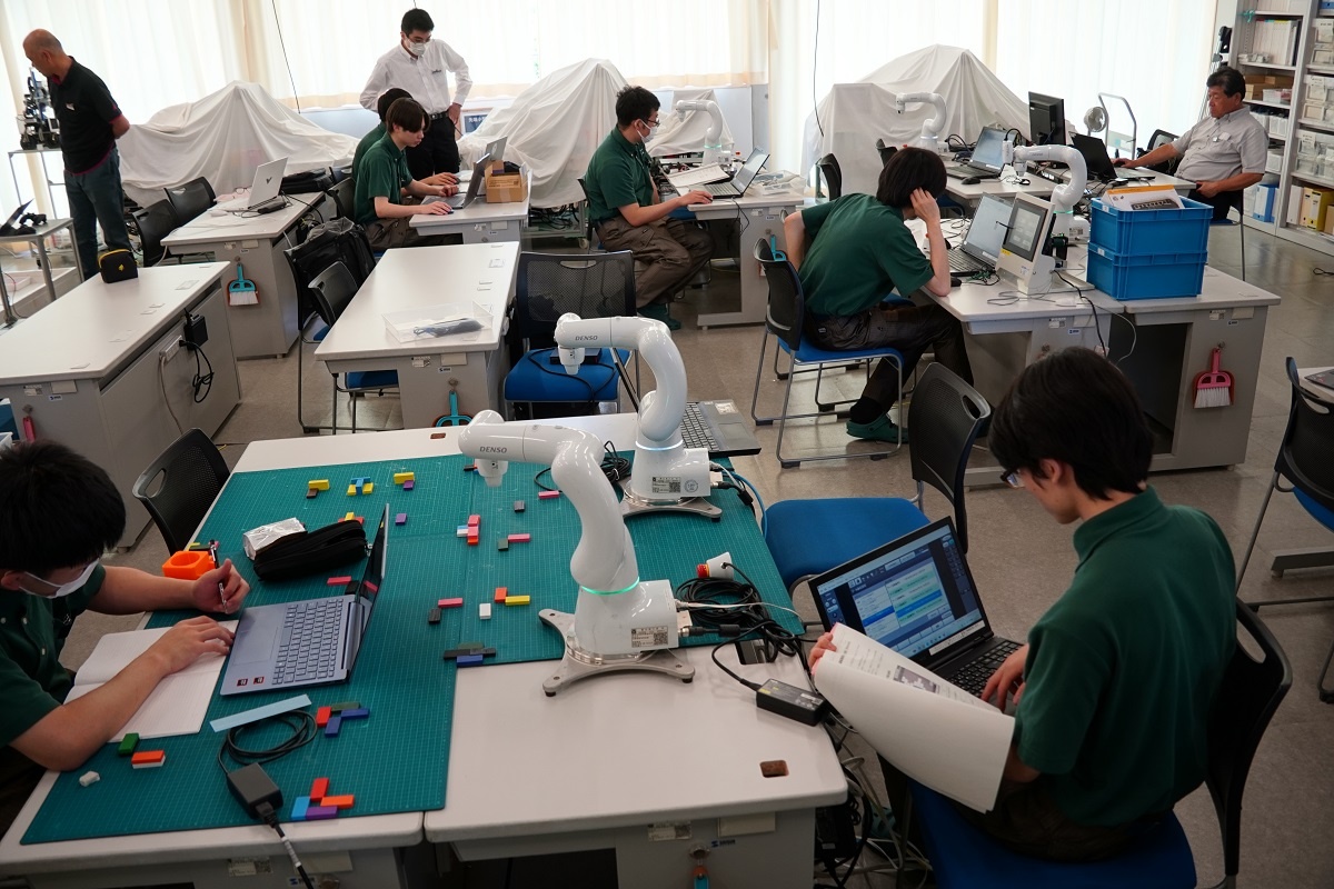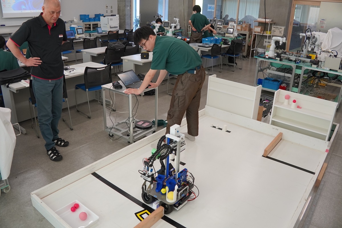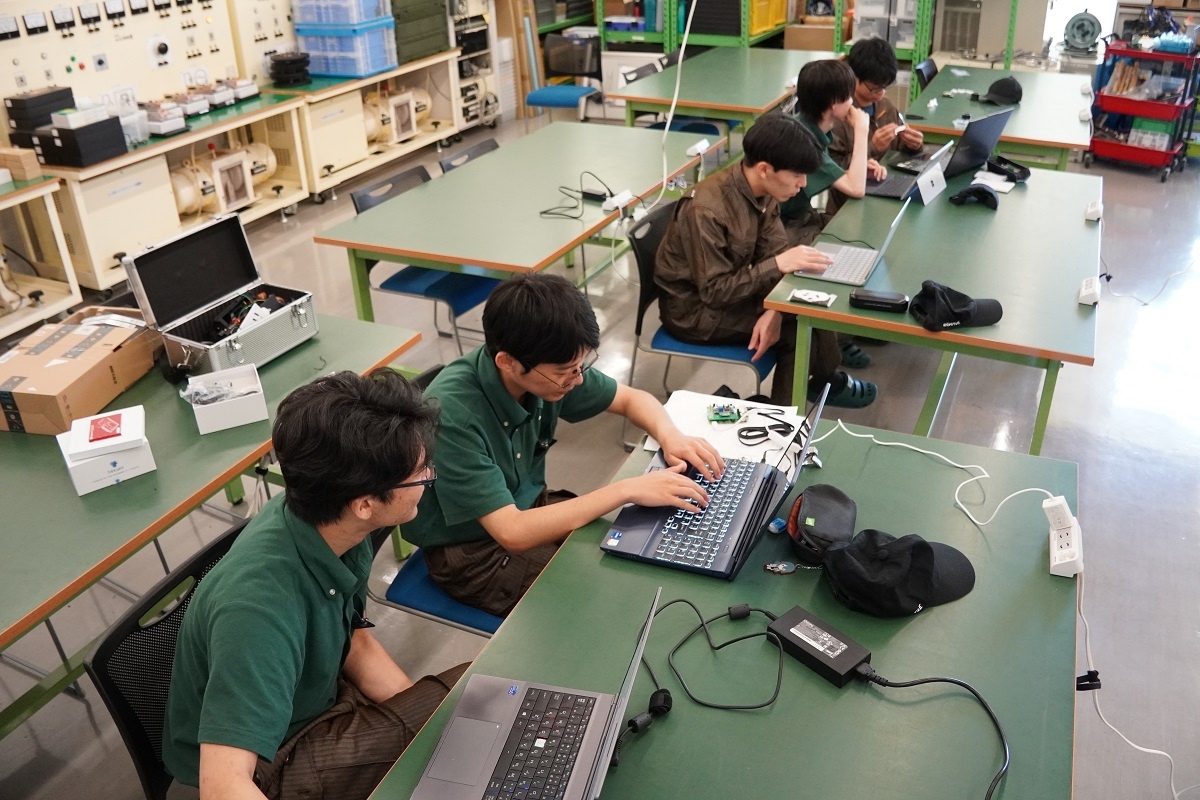 今日は総合実習(1年生)でした。「電気系・高度ものづくり技能の追求と実践(メカトロニクス)」班は、8月に香川県で行われる若年者ものづくり競技大会に向けて、課題の練習に取り組んでいます。