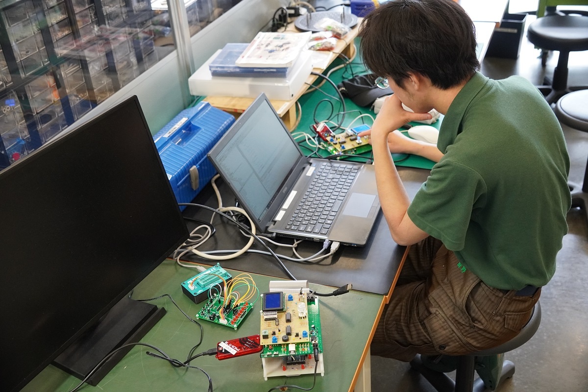 今日は総合実習(2年生)でした。「機械技術の研究とからくり機構を使った生産設備の製作Ⅱ」班は、8月に行われる若年者ものづくり競技大会に向けて、「フライス盤」「旋盤」「電子回路組立て」の3つの職種の練習に取り組んでいます。