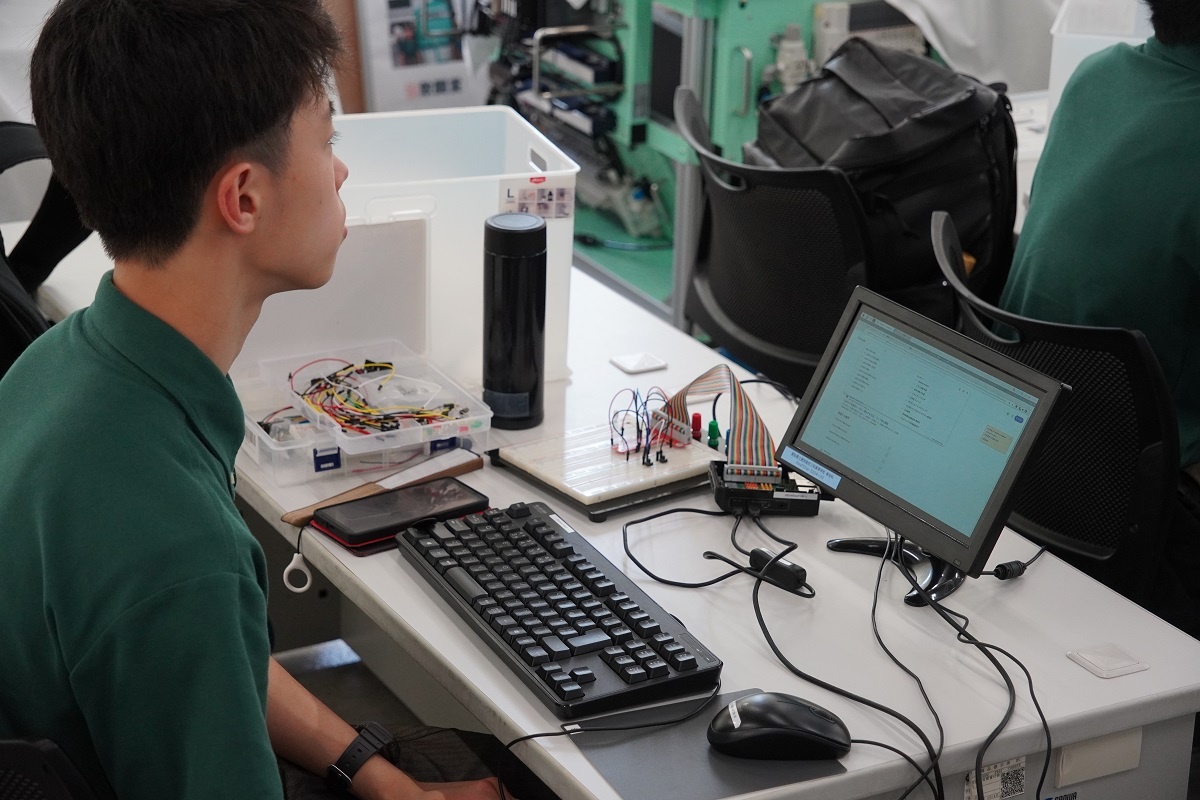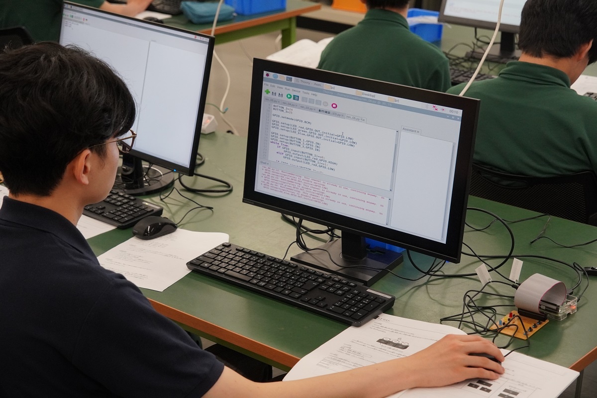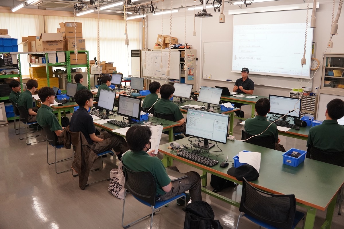 今日はコース実習(1年生)でした。自動車・航空コースは「CAD(CT)」、電気・制御コースは「機械基礎実習1」、情報・ITコースは「Pythonプログラム応用1」、電子・ロボットコースは「Pythonプログラム基礎」に取り組みました。