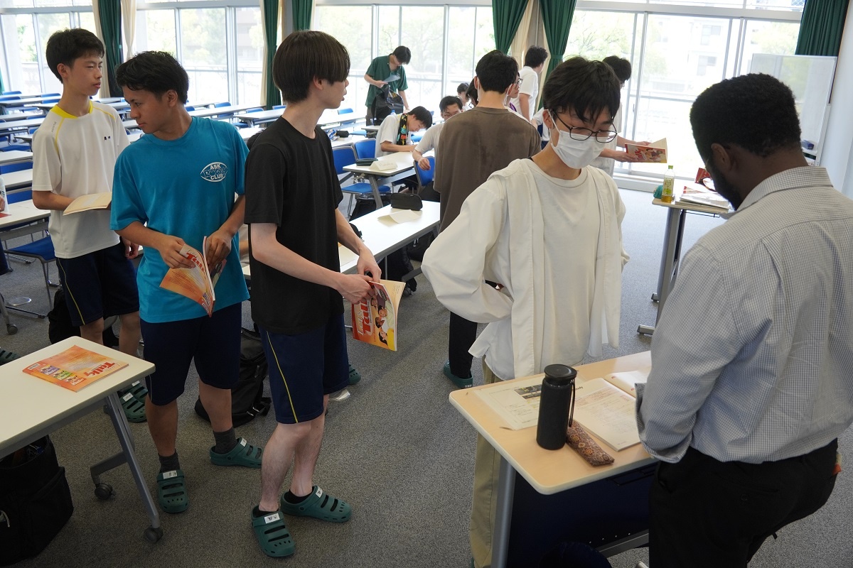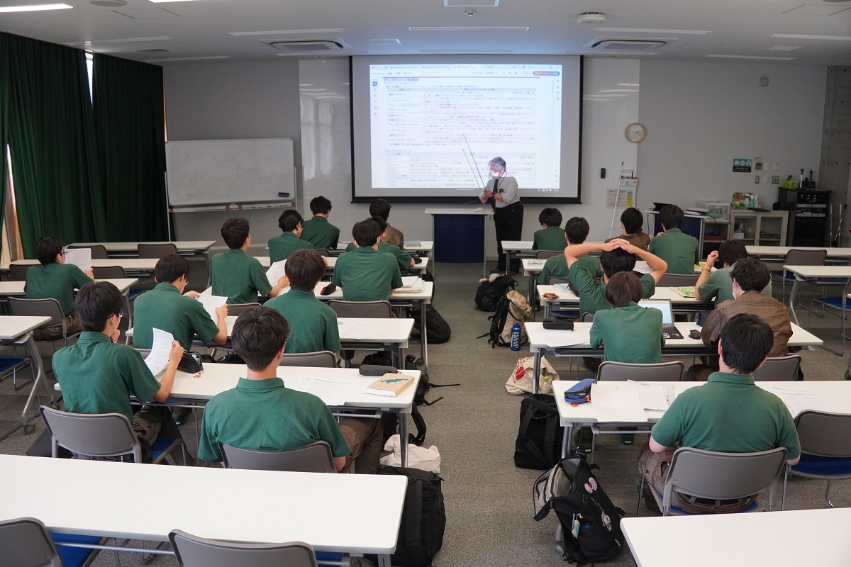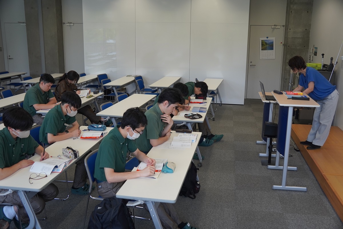 今日の体育実技は千種スポーツセンターでフットサル、総合演習は資格検定に取り組みました。毎週木曜日のお昼休みには、タイ研修旅行に向けて英語で会話を楽しむ姿もあります。また明日から始まる本科保護者会に向けて専攻科紹介ブースを設置しました。
