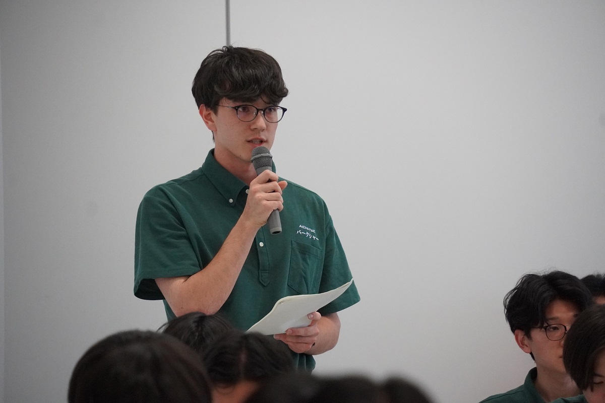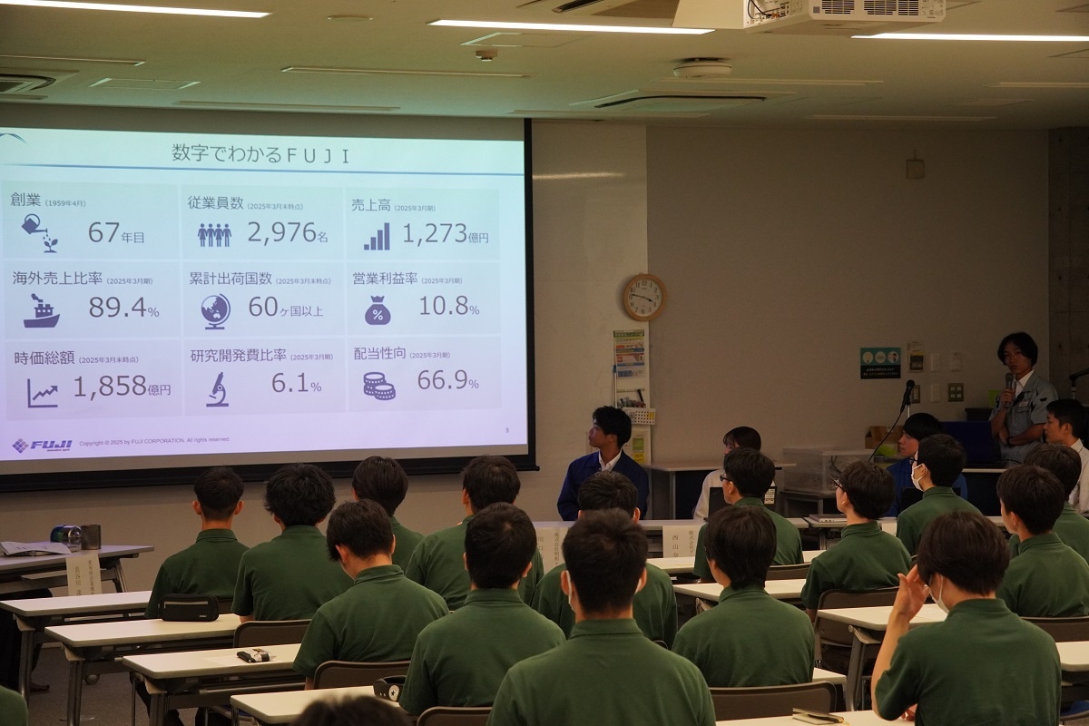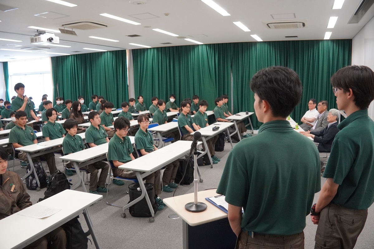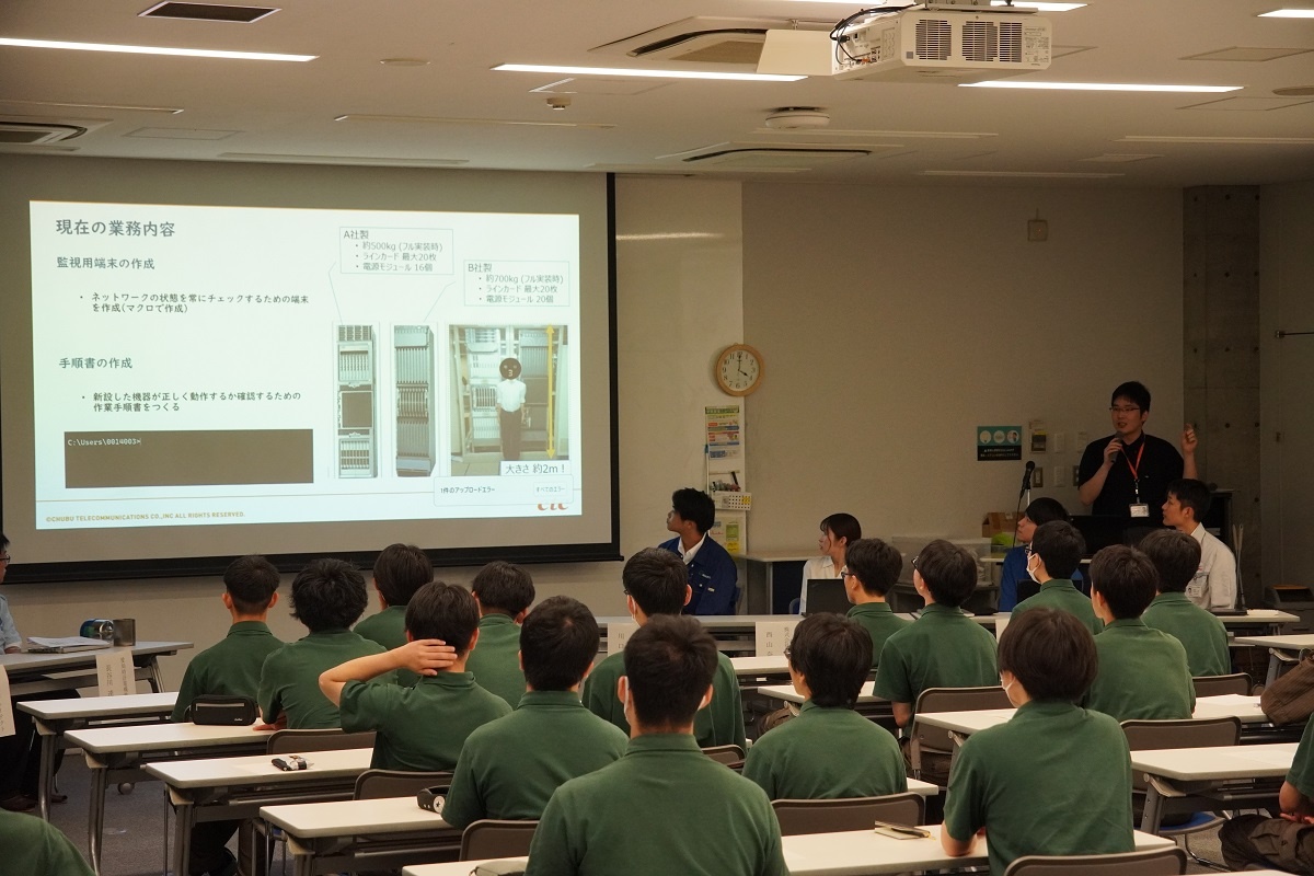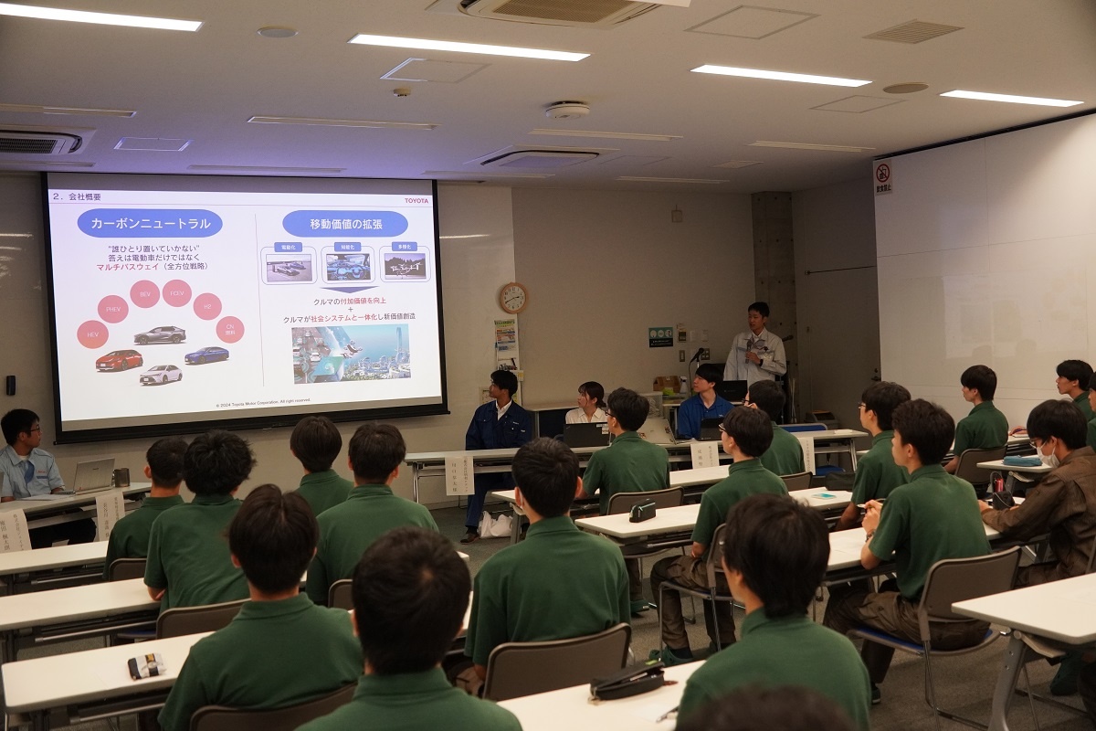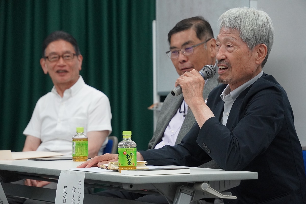 今日3限は1年生・2年生合同の「総合演習」でした。株式会社メイドー代表取締役名誉会長 長谷川様、学校法人名城大学専務理事 小原様をお迎えし、全生徒に寄贈いただいた本「黒子のモノづくり」を読んで協議・発表を行い、お礼を伝えました。 また4限は1年生を対象に「修了生と語る会」が行われました。8名の修了生を迎え、専攻科での経験や仕事の話を聞くことができ、有意義な時間となりました。