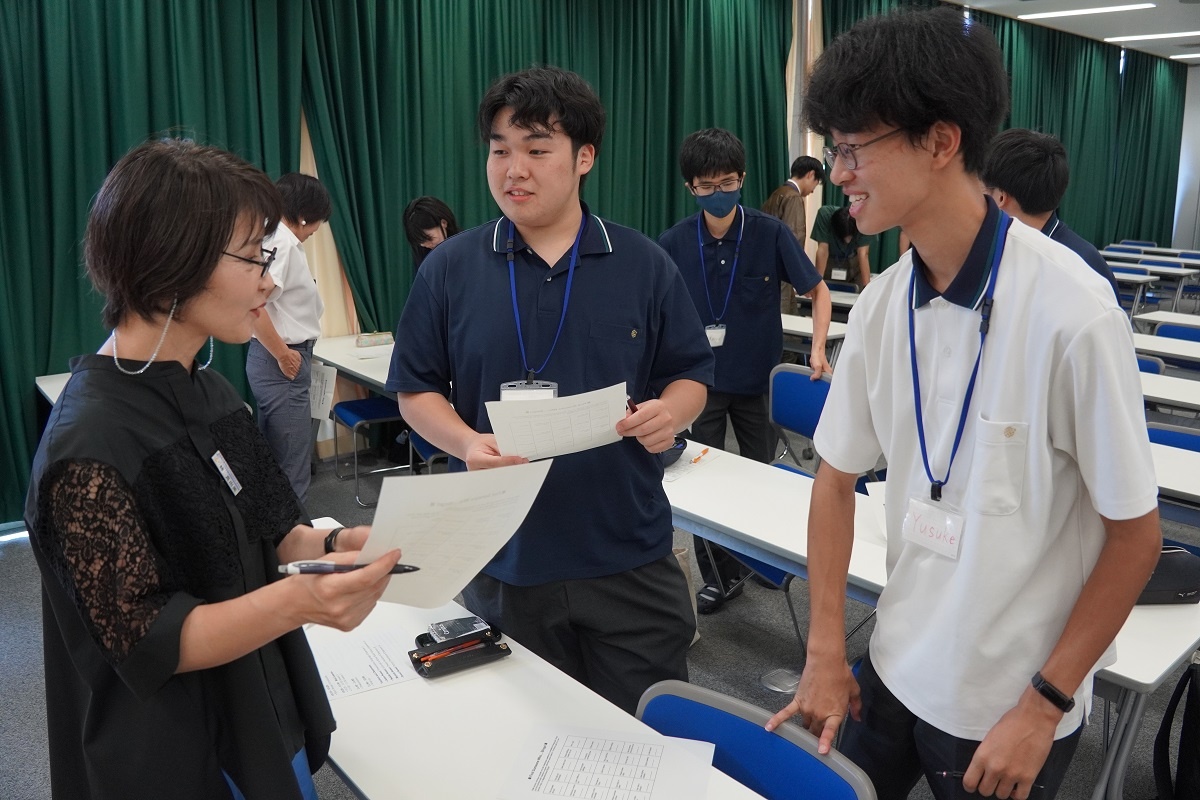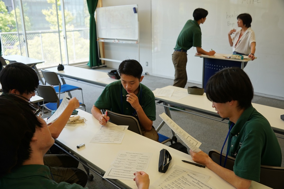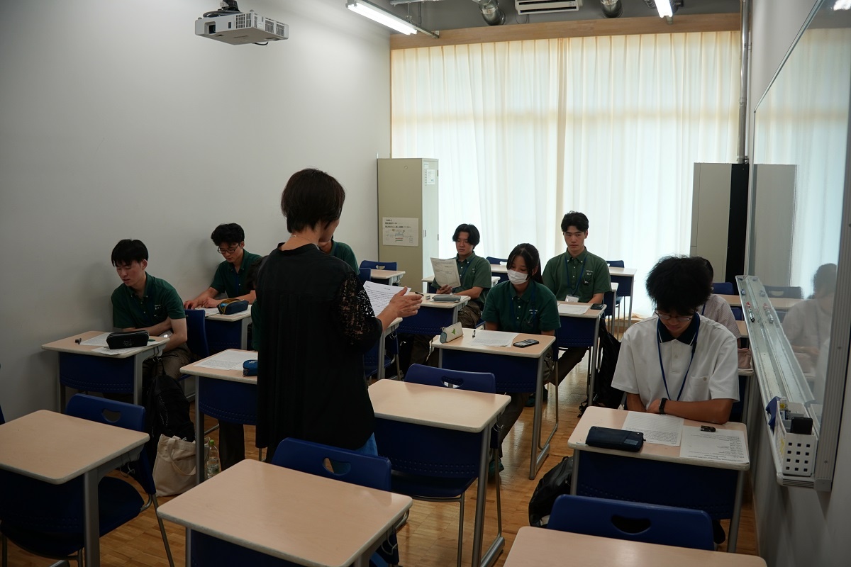 今日はGlobal Summer Camp2025の1日目で、専攻科25名、本科から7名の生徒が参加しました。 3つのグループに分かれ、30分ずつのミニレッスンを順番に回りました。仲間に英語で質問しビンゴゲームをするレッスン、仲間にインタビューをして紹介するレッスン、夢の休暇の過ごし方を想像してプレゼンするレッスンなど、少人数制で、楽しく英語が学べる貴重な時間でした。