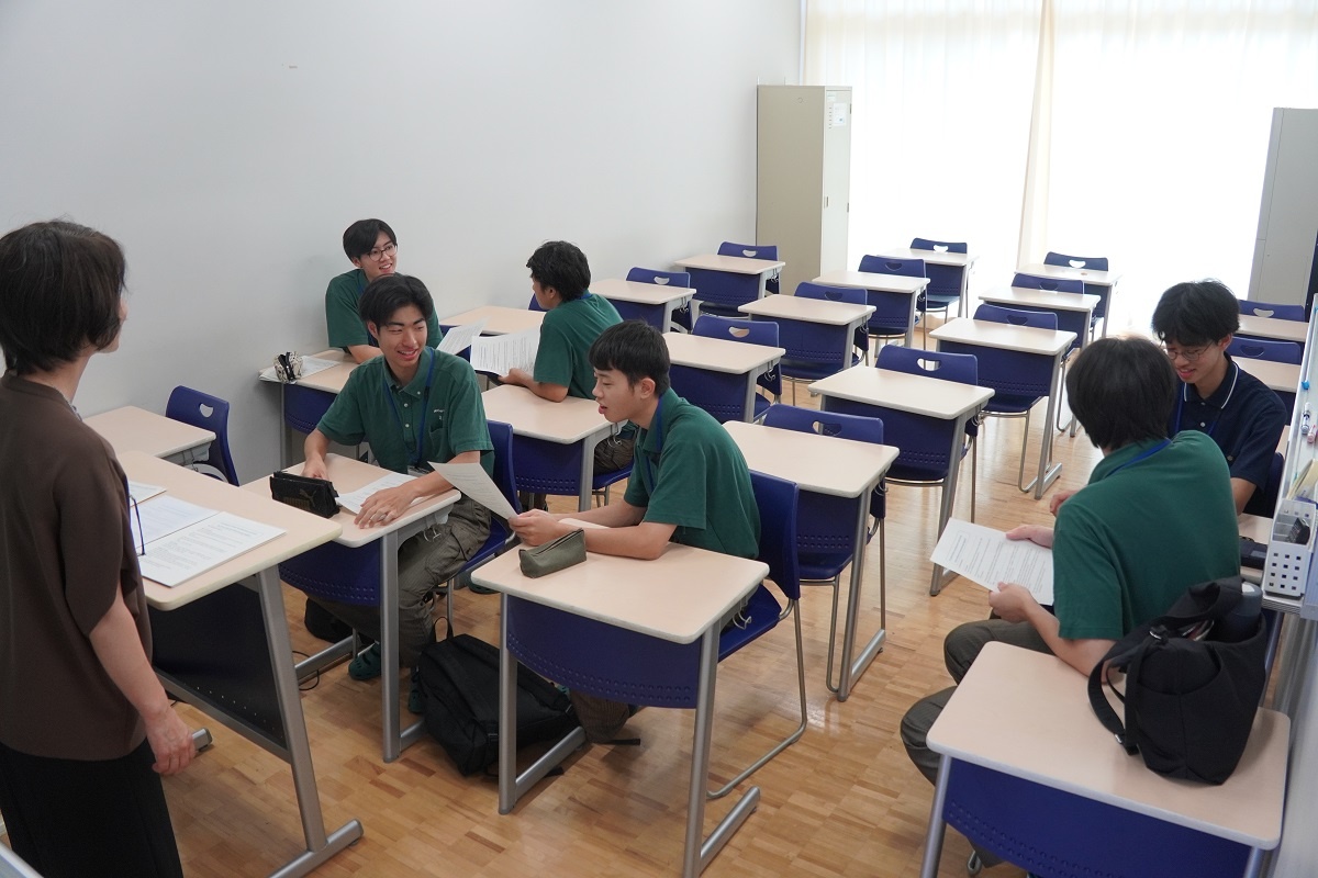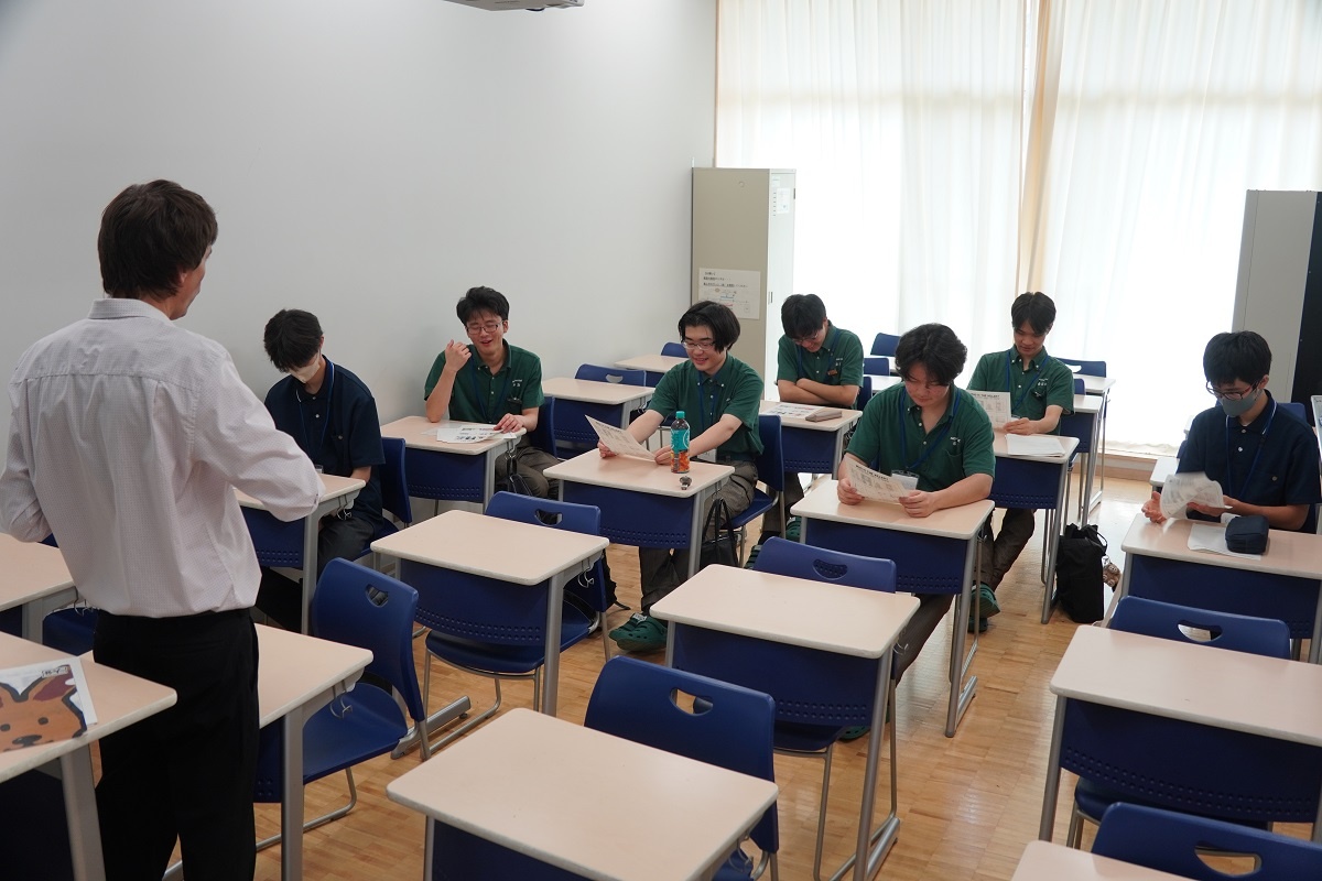 今日はGlobal Summer Camp2025の2日目でした。 今日は未来の自動車や食べ物などがどうなっているか想像して意見を述べるレッスン、 to+不定詞について学ぶレッスン、5つの質問だけで答えを導き出すレッスン、AIの翻訳ソフトが発展するいま私たちは英語を学ぶ必要があるか意見を述べるレッスンなどに取り組みました。英語だけでなく、自分の意見を短時間でまとめる力も求められるレッスンでした。