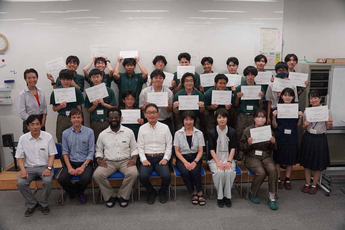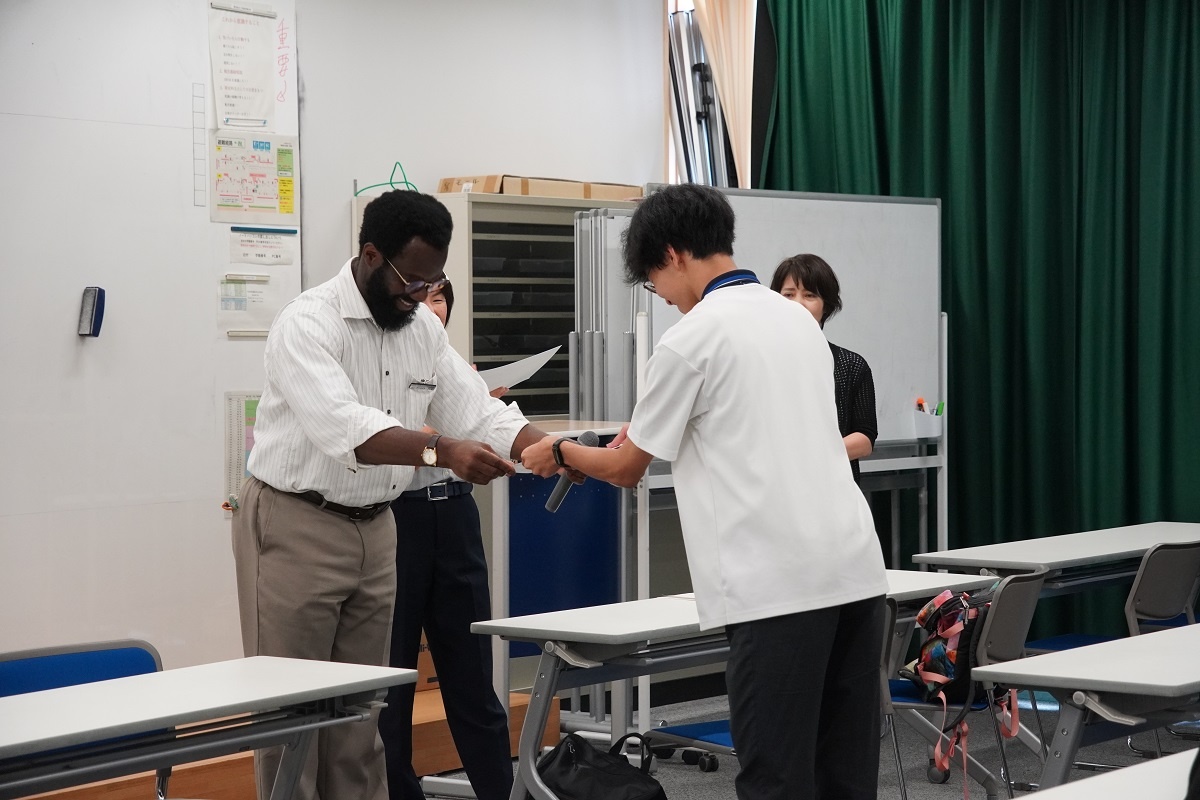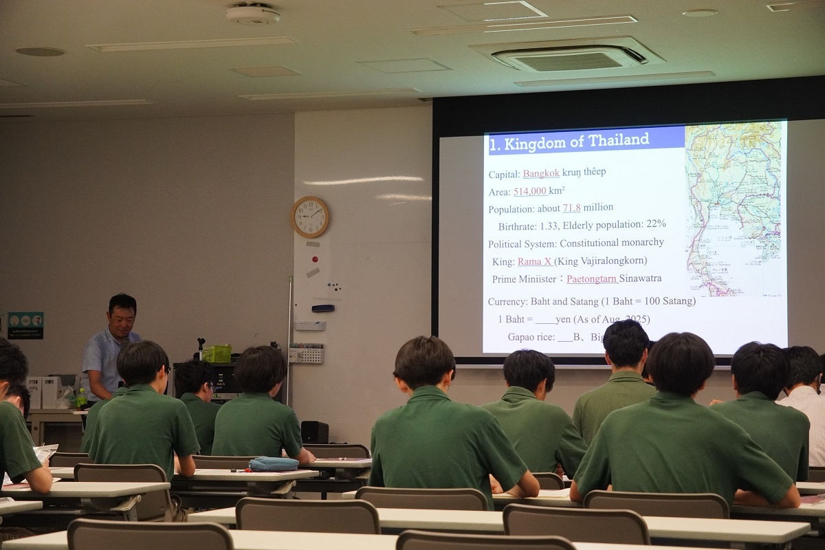 今日はGlobal Summer Camp2025最終日でした。 名城大学 外国語学部 津村教授を講師にお迎えし、タイの言語と文化について英語での特別講義を受けました。その後、英語を使った3つのミニゲームに取り組み、最後に修了証を受け取りました。3日間、様々な形で英語に触れることができ、大変貴重な体験になりました。また午後からは出校日があり、前期の成績発表などが行われました。