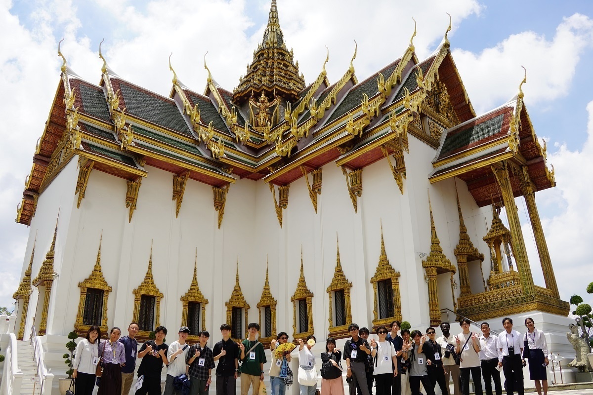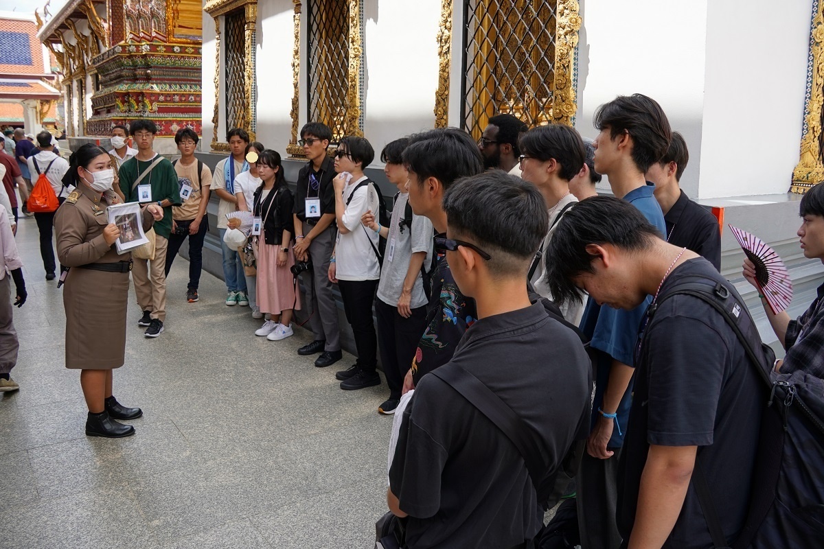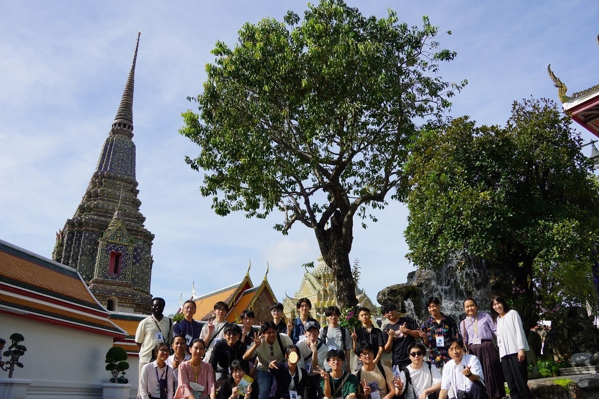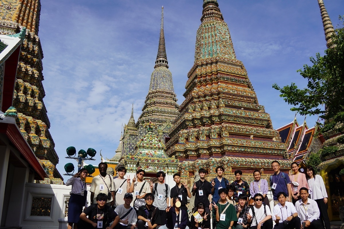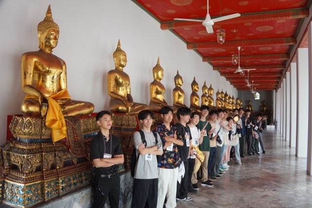 今日は最初にラーマ1世によって、僧侶が法を学ぶための場所として建立を命じられ、学術の拠点とされてきたワット・ポー(ねはん寺)へ行きました。見学の途中、僧侶が来て下さり、一人ひとりにミサンガのようなものを付けて下さりました。Good Luckという意味があるそうで、とても貴重な体験ができました。