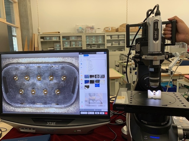 今回はデジタルマイクロスコープの最新機器の説明を受けました。これを使うと、製作したモノの精密測定、電子回路のハンダ付けの状況など目に見えない場所まで最大6,000倍まで拡大して見ることができるそうです。すごいですね。 こうして専攻科では、より深く高度な内容を学ぶ環境を整えるため、教員が主体的になって最新設備導入の勉強会をしています。