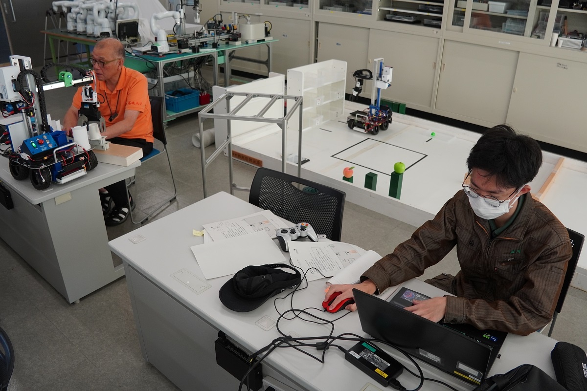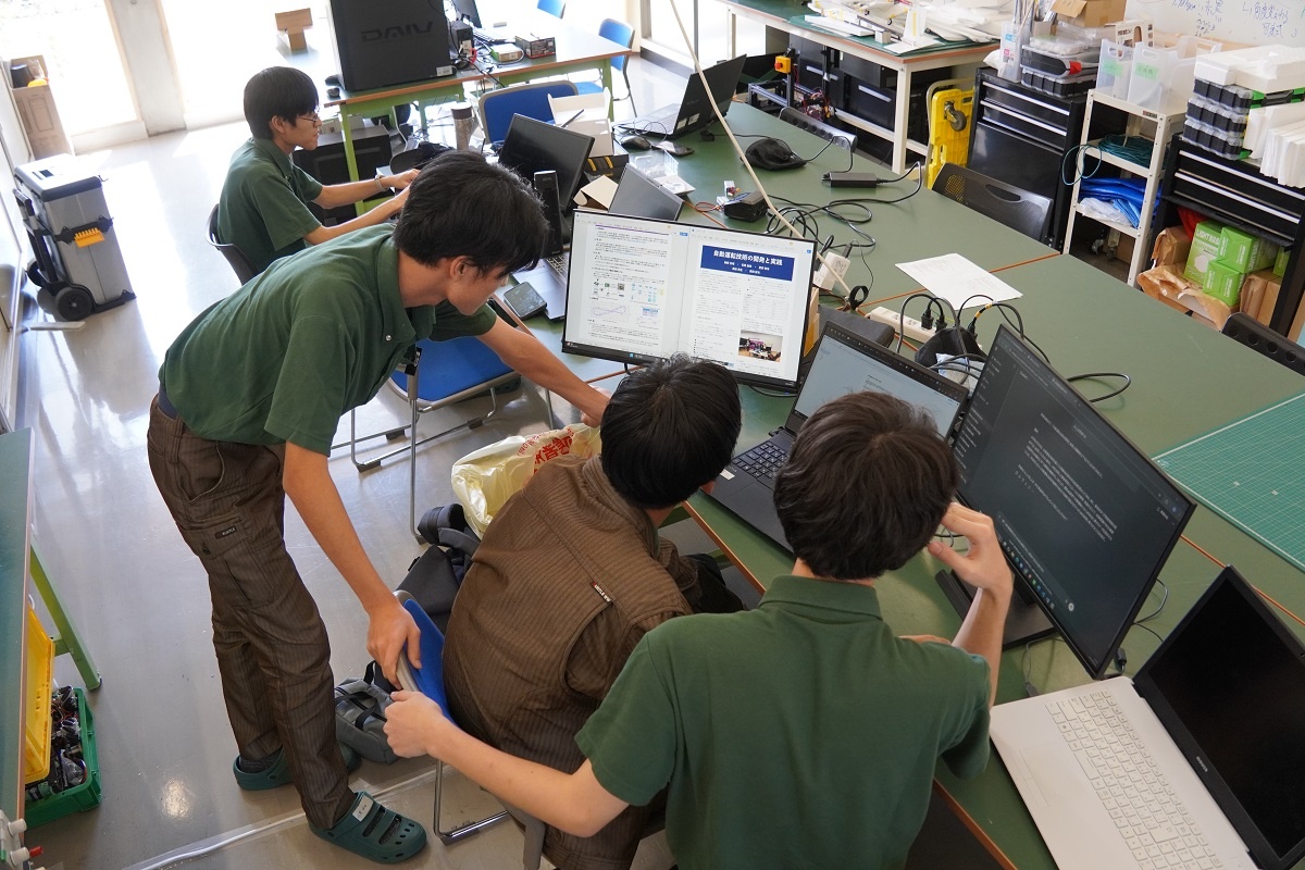 今日は2年生が総合実習でした。 9月26(金)~28日(日)、1年生・2年生「自律飛行ロボットの開発と実践」班は、東京都蒲田の工学院アリーナにて開催された第21回全日本室内飛行ロボットコンテストに出場しました。一般部門にエントリーしましたが、今年はとても多くのエントリーチームがあり、3次審査まで頑張り、2チームとも本戦に出場することができました。