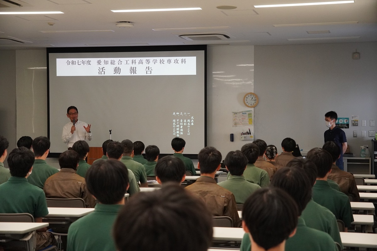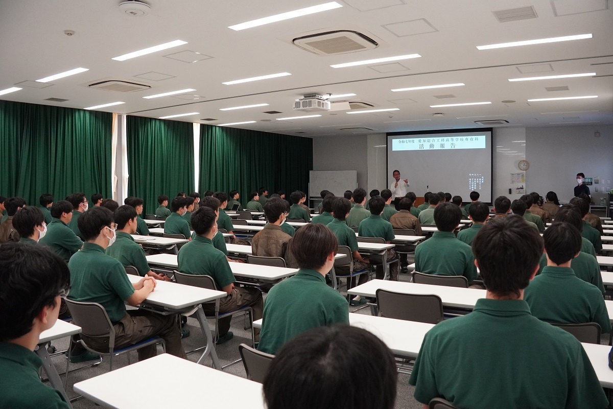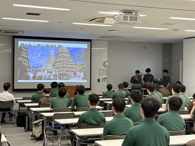 今日の3限は1年生、2年生合同の活動報告会が行われました。資格・検定取得者や前期中の各種大会表彰者がみんなの前でお披露目されました。また責任者講話、タイでの海外研修報告も行われました。後期も頑張って下さい♪