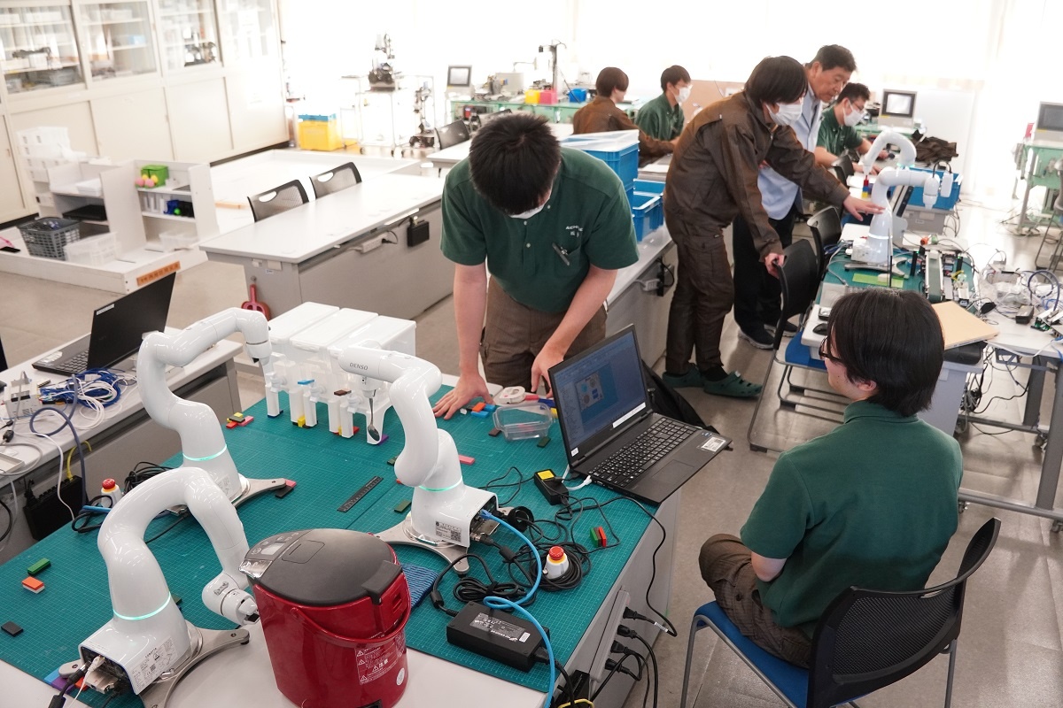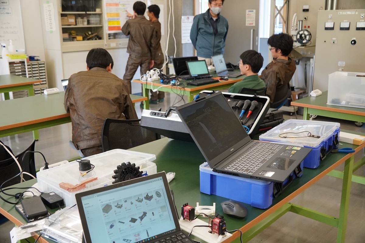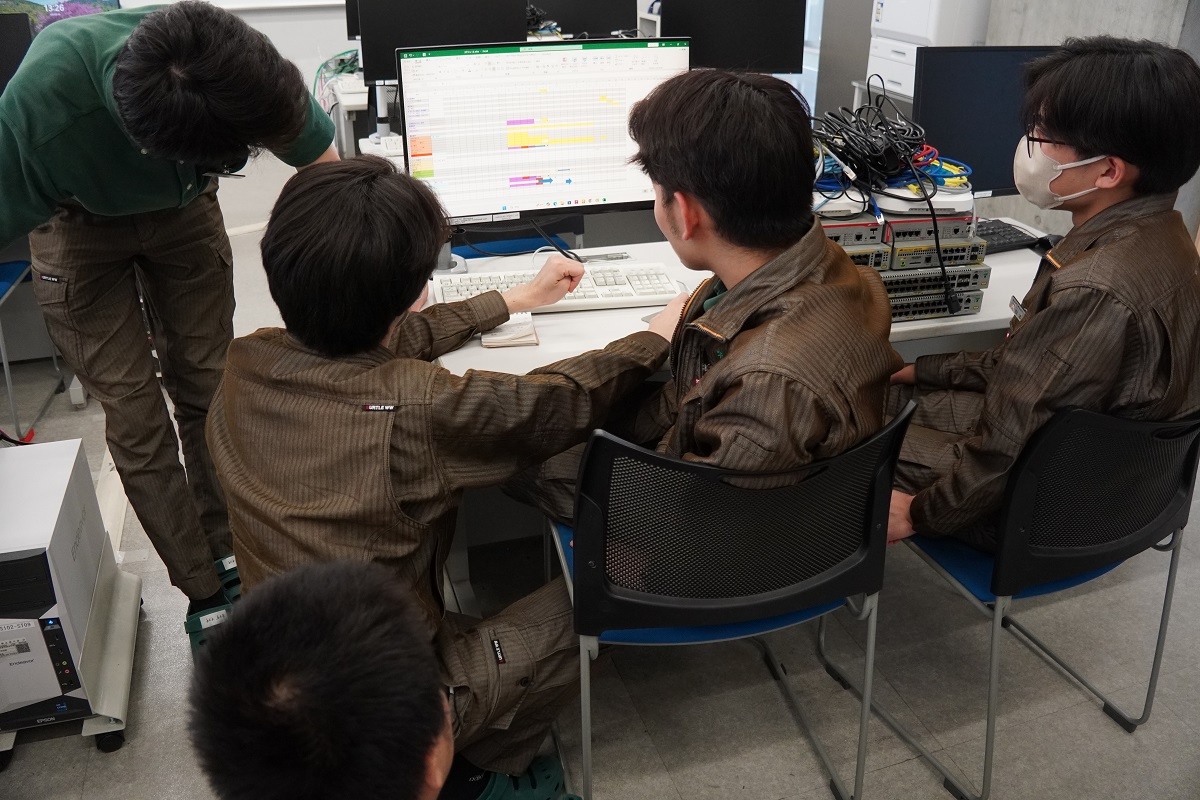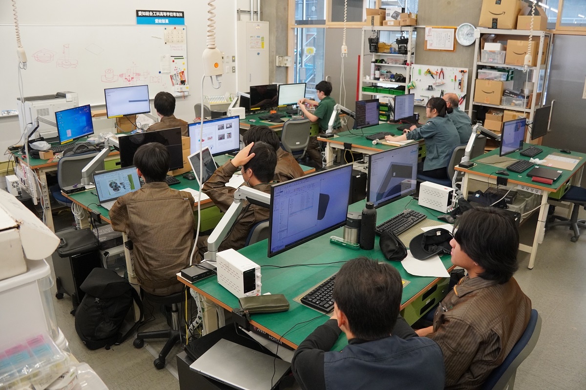 今日は総合実習(1年生)でした。「自律飛行ロボットの開発と実践」班は午前中、名城大学ナゴヤドーム前キャンパス体育館での活動でした。現在、製作期間1か月で、1人1機体を製作するという取組をしており、今日は9名いるメンバーのち5名がテストフライトを行いました。