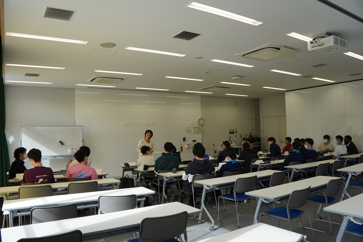 今日の体育実技は運動場で行われ、ハンドボール投げと50m走の計測を行ったあと、それぞれの方法で体を動かしました。 また3限「総合演習」では、先週に引き続き資格検定の勉強に取り組みました。