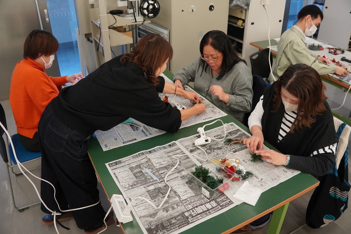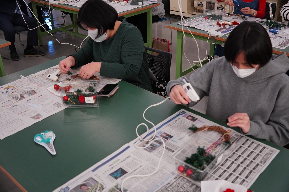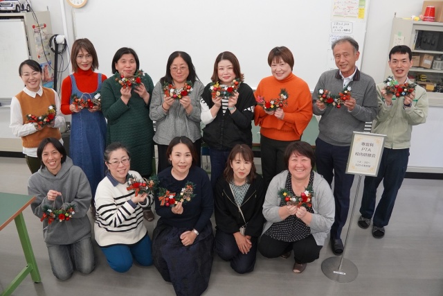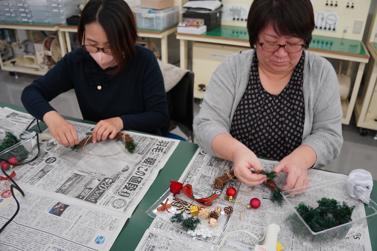 体育実技はスポーツ大会の練習でフットサルとバレーボールに取り組みました。 また今日は1年生に向けて責任者より専攻科10周年記念行事についての話があり、同窓会より記念誌と記念品が配布されました。 午後からは第1回PTA校内研修会「クリスマスの壁掛け製作」が開催され、10名の保護者に参加いただきました。フラワーサロン有花 松野先生を講師にお迎えし、みんなでワイワイ楽しい時間となりました。