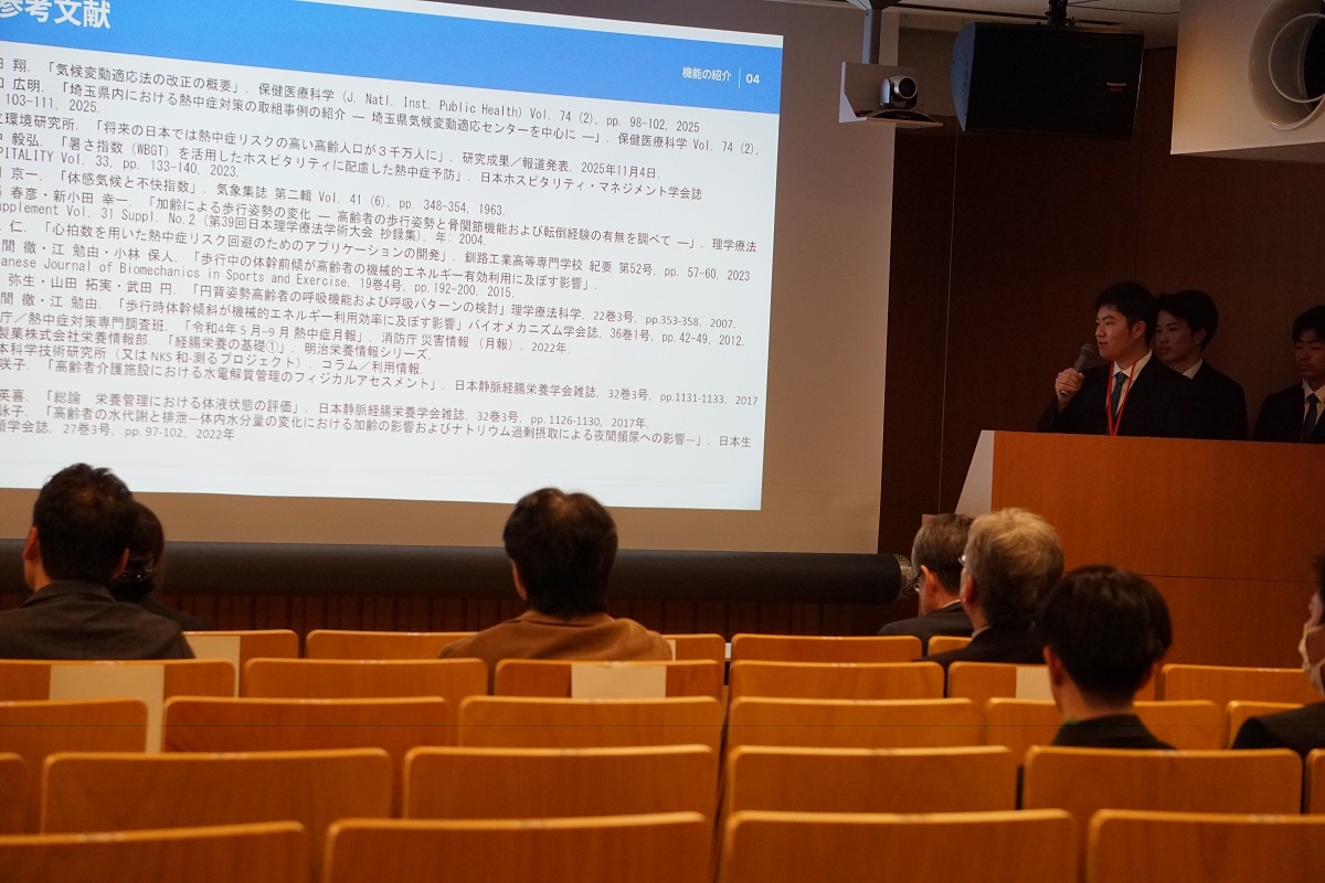 総合実習(2年生)「フレイル予防ソリューションの企画&開発」班は、11月23日(日)に京都大学 国際科学イノベーション棟 シンポジウムホールで開催されたテクノアイデアコンテスト「テクノ愛 2025」[大学の部]最終審査会に参加しました。