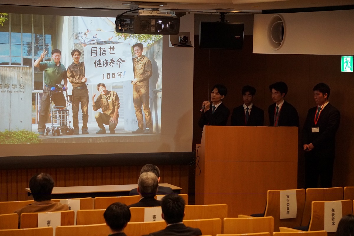 “フレイル予防スマートカートの開発”という内容で、書類審査を通過してから発表練習に取り組み、当日はリラックスして自分たちの思いを伝えることができました。結果、準グランプリを受賞でき、これまで2年近くにわたって取り組んできた努力が、こういった形で報われたことは本当によかったです。