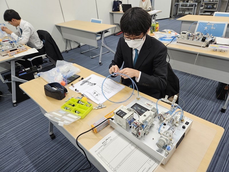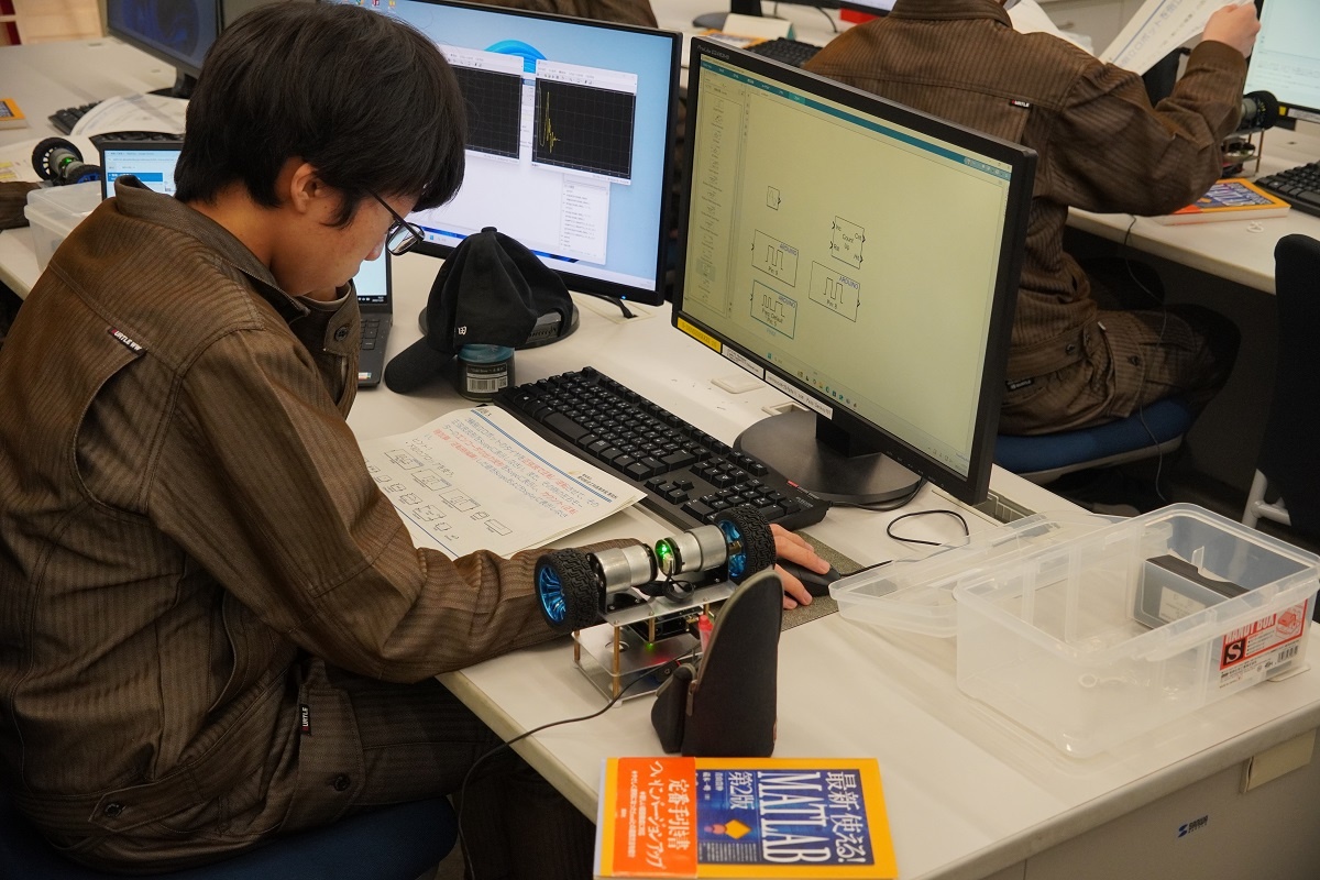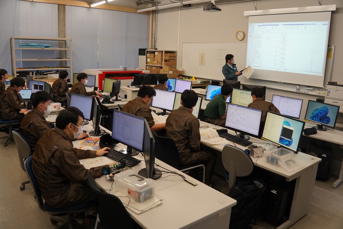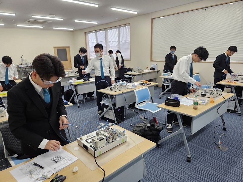 今日はコース実習(1年生)でした。自動車・航空コースは「レーザー加工・プレス板金@アマダ」、電気・制御コースは「空気圧制御@SMC」、情報・ITコースは「MATLAB」、電子・ロボットコースは「機械技術実習1(フライス・仕上げ・旋盤)」に取り組みました。