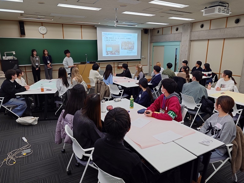 11月28日(金)ピア・サポートメンバーが、名城大学が推進する「学びのコミュニティ創出支援事業」の企画に参加し、名城大学の学生に向けて講演を行いました。専攻科で取り組む実学教育の概要を紹介し、専攻科生活をつなぐ「学びの循環」のあり方について伝えることで、専攻科の教育の特色を発信しました。