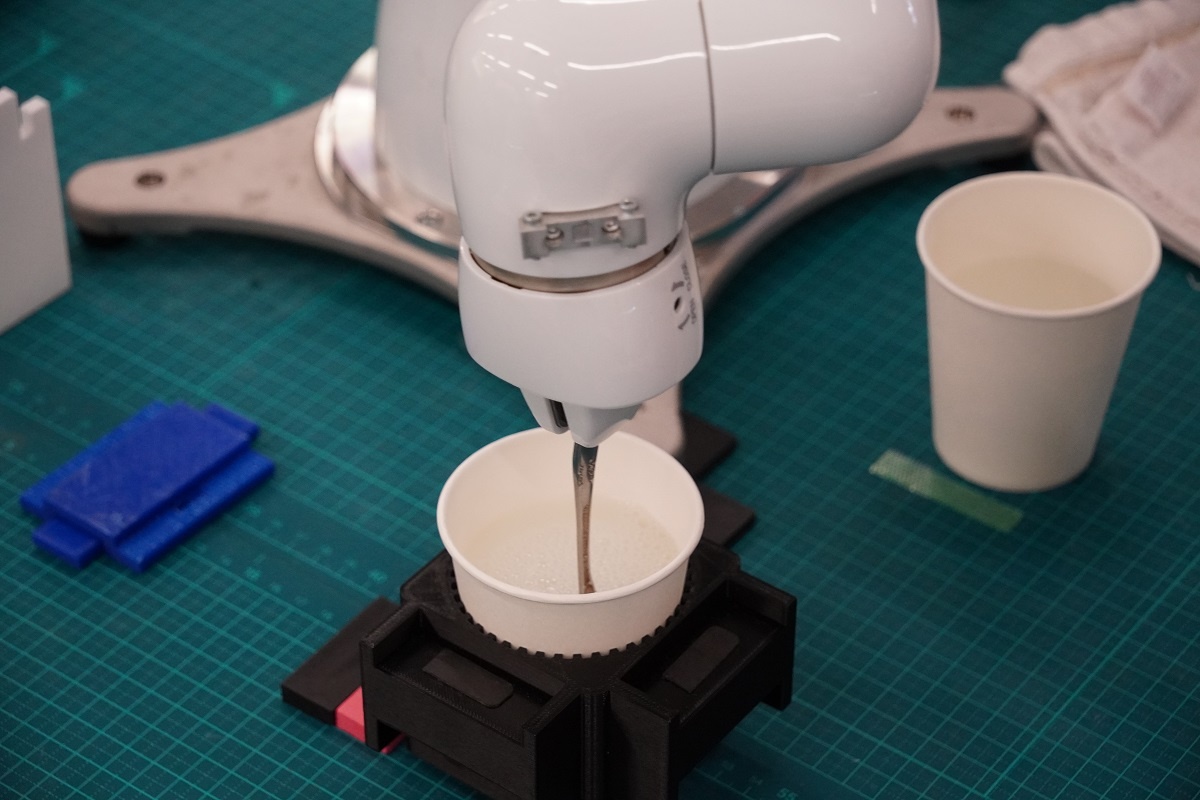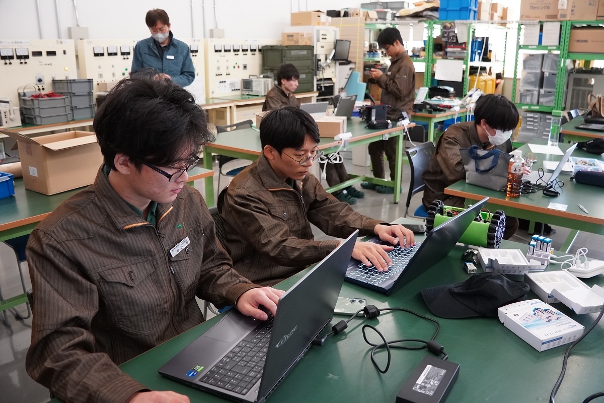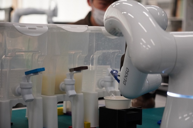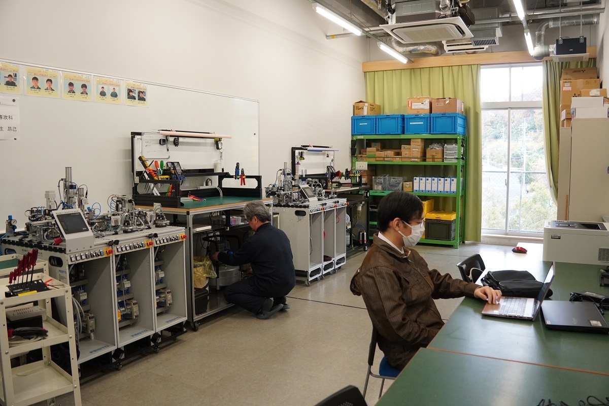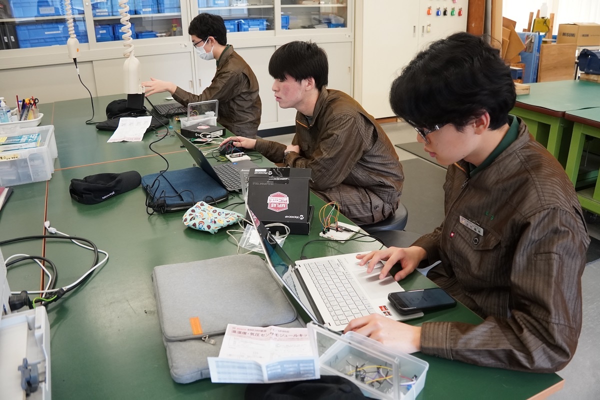 今日は総合実習(1年生)でした。「人協働ロボット活用システムの開発と実践」班は、cobotta3台を使ってカルピスの原液と水を混ぜ合わせ、飲める濃さで完成させるという取り組みをしています。 また多くの班が1月に行われる学習成果発表会に向けてポスター作成や動画の作成、研究集録の作成に取り組んでいました。