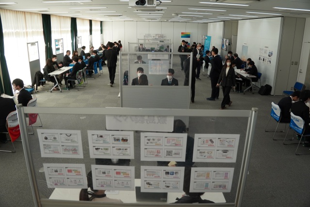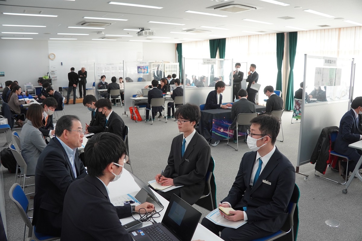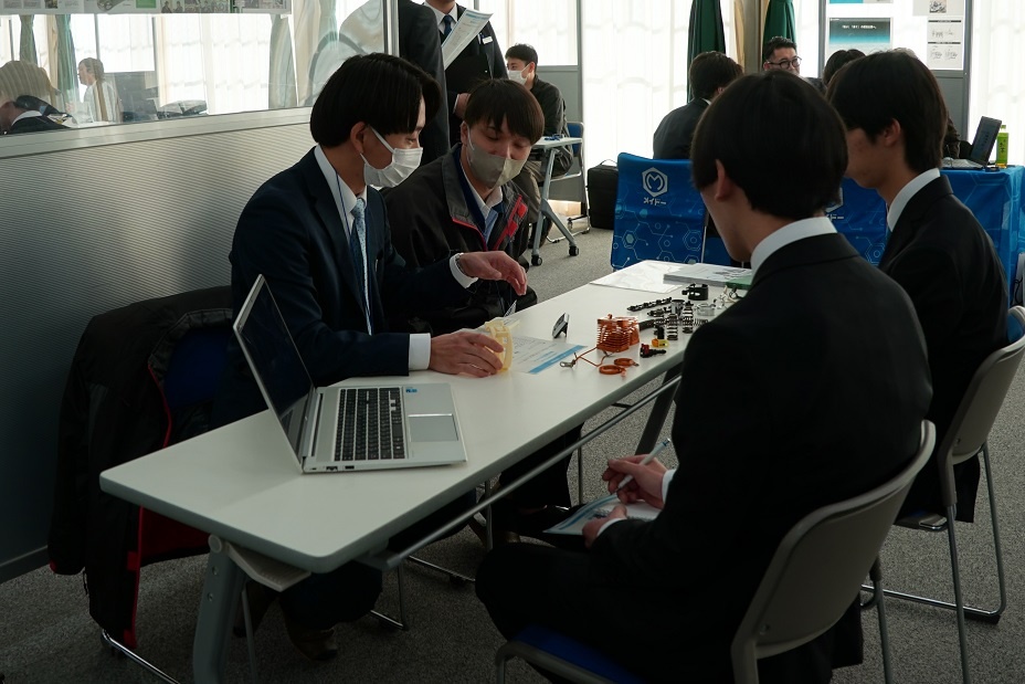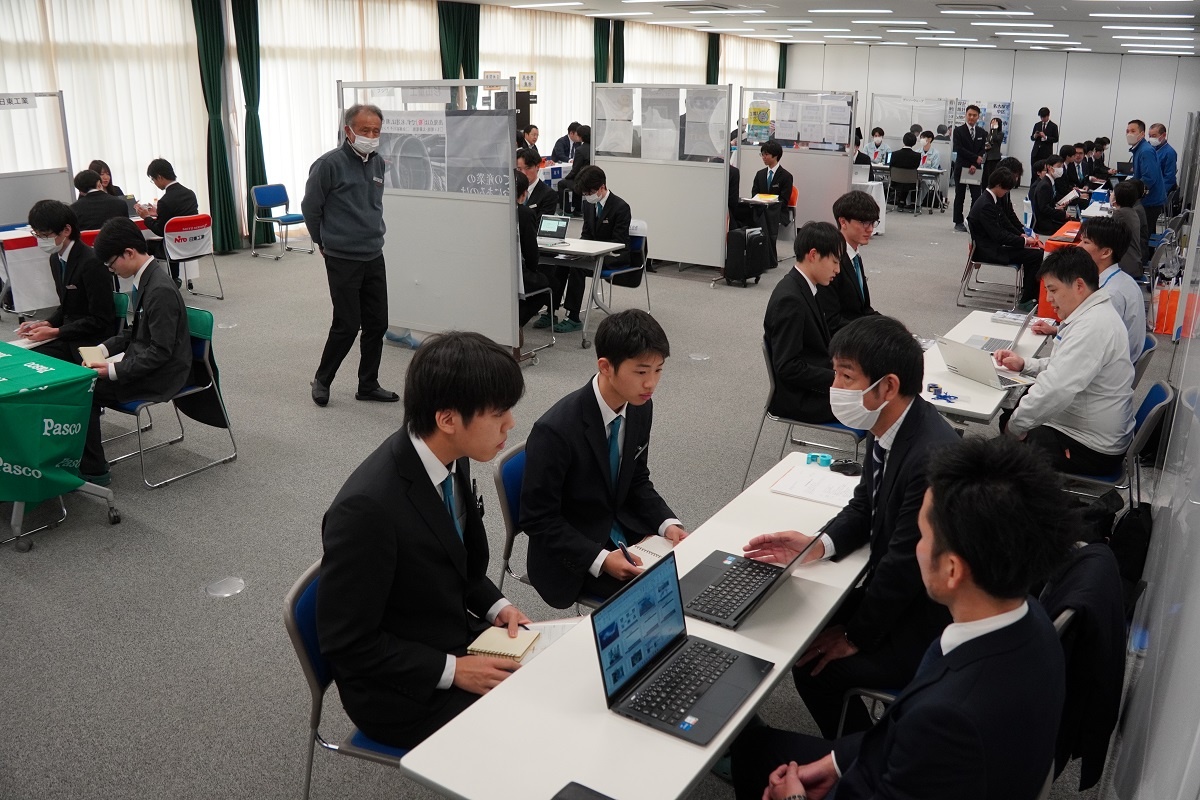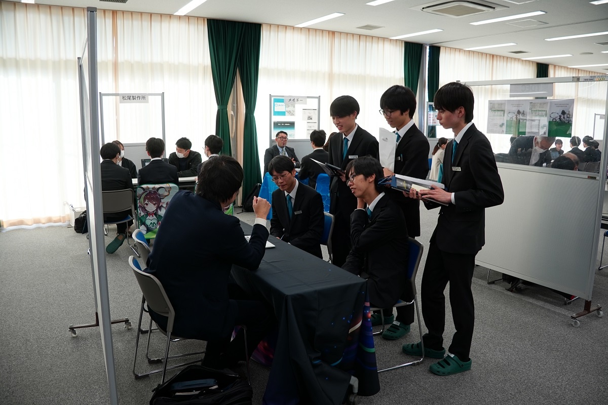 今日は2年生が補講日、1年生は「業界研究セミナー」でした。「業界研究セミナー」は、午前・午後の2部制で、様々な業界のモノづくり企業40社に参加いただき、生徒は各15分の個別説明を5ターンずつ、1日で最大10社の話を聞くことができました。真剣に企業の説明を聞く姿がみられました。