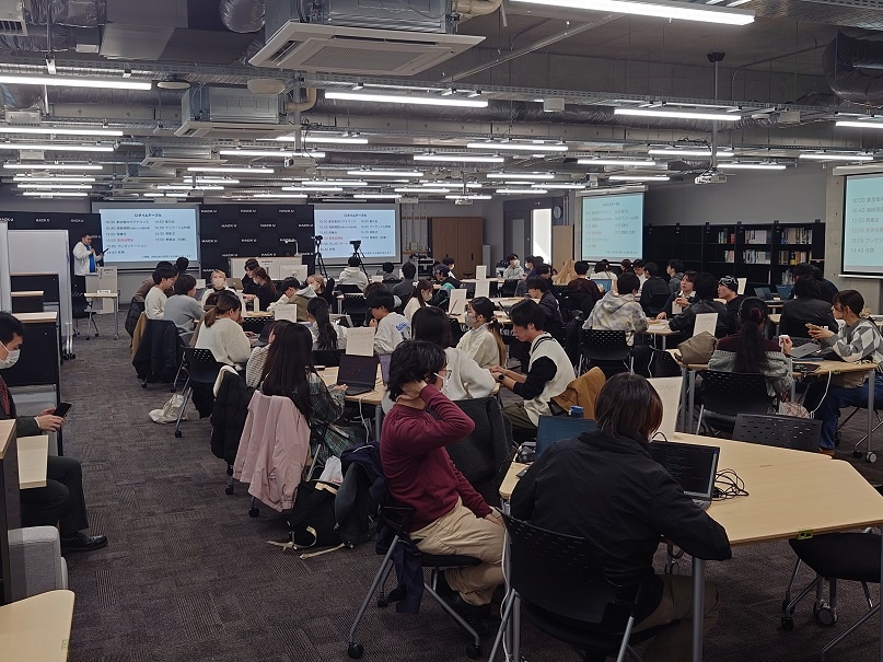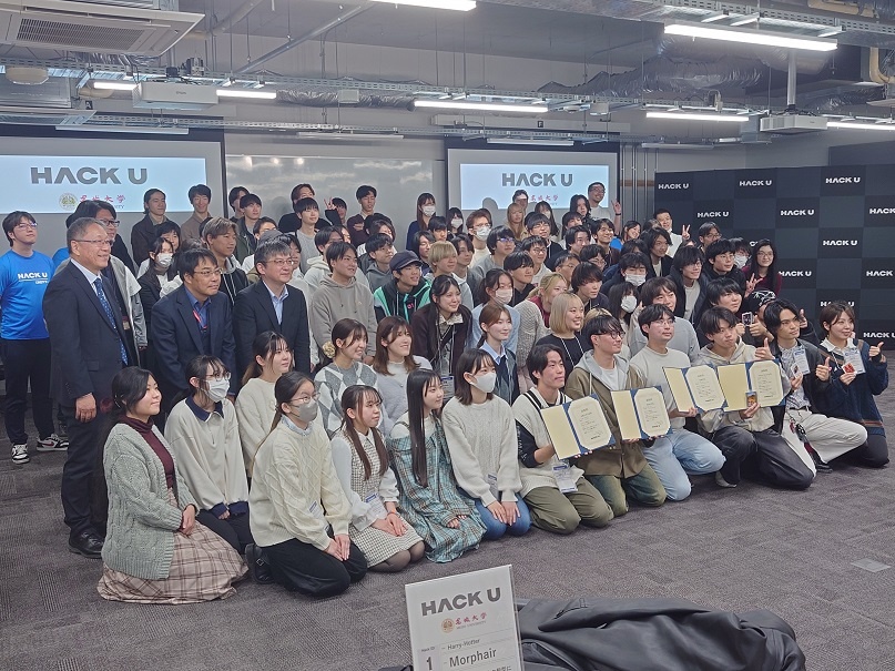 また12月6日、名城大学天白キャンパスで開催された『Hack U名城大学 発表・審査会』へ2年生2名が参加しました。今年度のテーマ「当たり前改革~日常にユーモアを~」を基に名城大学生と一緒にアイディアを出し合い、発表を行いました。アイディア出しから発表まで、授業ではできない貴重な取り組みをすることができました。
