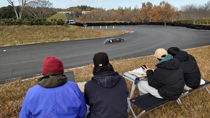 12月5~6日、2年生総合実習「エコモビリティ技術の研究と実践Ⅱ」班が、千葉県 日本自動車大学校で開催された『2025 NATS EV 競技会』WEMオープン部門に2台参加しました。支給されたバッテーリーで120分間の走行周回数を競う競技で、2台とも完走することができました。