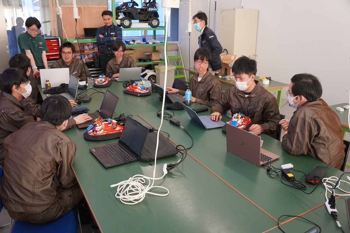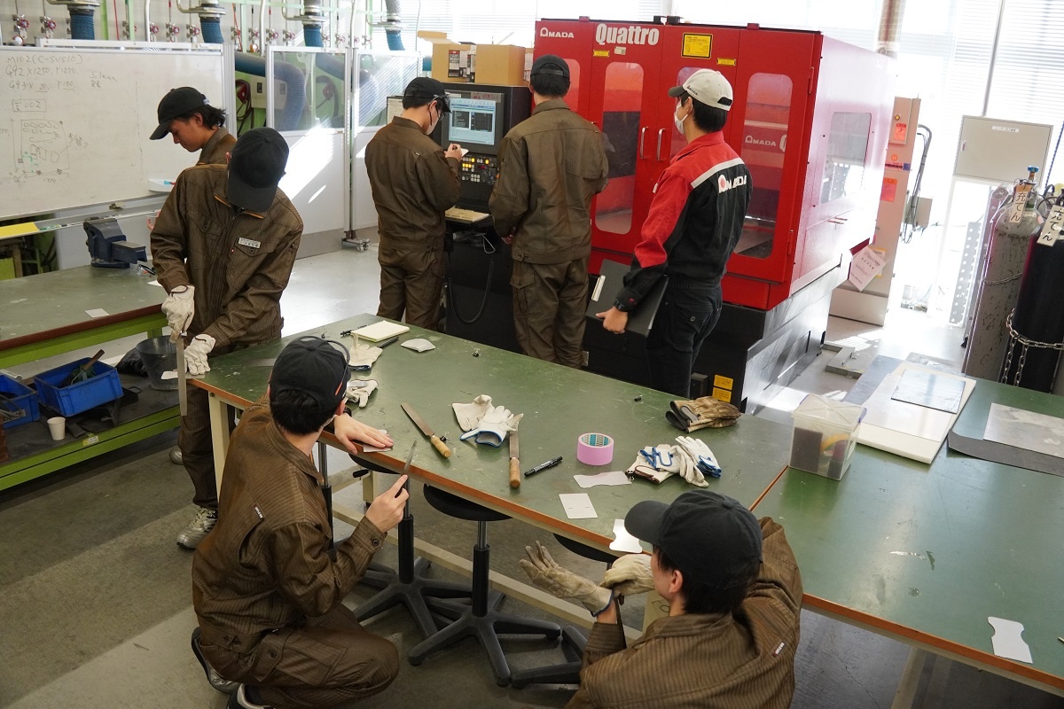 今日はコース実習(1年生)でした。自動車・航空コースは「車両開発周辺技術」、電気・制御コースは「電気機器」、情報・ITコースは「システム制御応用」、電子・ロボットコースは「レーザー加工・プレス板金」に取り組みました。
