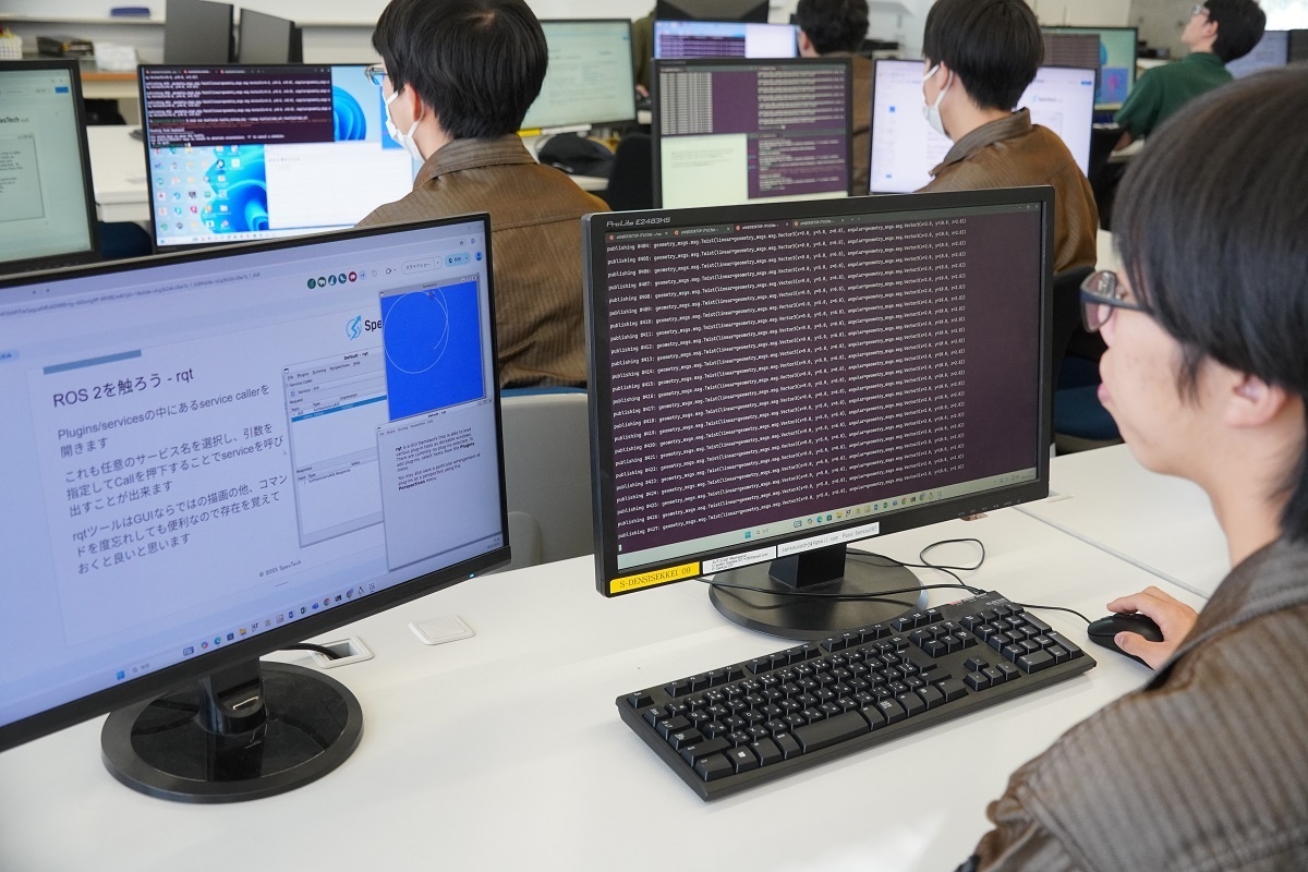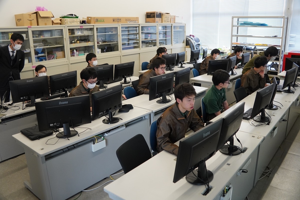 今日はコース実習(1年生)でした。自動車・航空コースは「Pythonプログラム基礎」、電気・制御コース、電子・ロボットコースは「電力設備実習@NTTアノードエナジー」、情報・ITコースは「ロボット制御」に取り組みました。
