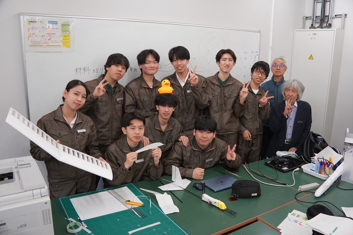 今日から2年生は総合実習が始まりました。今年度は「機械技術の研究とからくり機構を使った生産設備の製作Ⅱ、電子機器組立の総合研究」「電気系・高度ものづくり技能の追求と実践(メカトロニクス)」「先端小型ロボットの開発と製作」「航空機製作に向けての基礎研究と実践(鳥人間コンテスト挑戦Ⅱ)」「自律飛行ロボットの開発と実践」「人協働ロボット活用システムの開発と実践」「ドローン及びAIを使ったアグリテクノロジーのビジネス化の研究」「航空宇宙機器開発手法によるCANSAT開発」の8つのテーマに取り組みます。