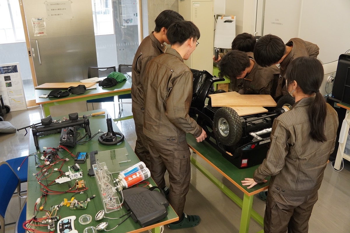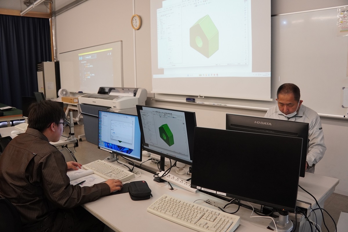 今日は総合実習(1年生)でした。「機械技術の研究とからくり機構を使った生産設備の製作Ⅰ」班は、5月に来日するタイ王国CDTIの留学プログラムに向けて、文鎮製作と、文鎮に行うていきん作業のための治具づくりに取り組んでいます。