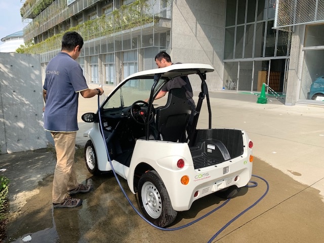 午後から第2回PTA校内研修「コムスを知ろう!乗ってみよう!」~生徒になって楽しもう~ が行われました。コムス設計者の坪倉先生(トヨタ車体株式会社所属)が講師を務め、保護者が生徒となり学びました。 また、本日NYP留学生としてシンガポールからハマン君とザイオン君がやってきました。今朝、セントレアに到着し、お昼は早速お寿司を食べてきたそうです。これから3ヶ月、研究を進めると共に、専攻科を通じて色んな体験をしてもらえるといいなと思います。