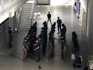 点呼は4月オリエンテーション合宿での練習から始まり、1年生は今まで教員が指揮をとっていましたが、今日から生徒が点呼者として指揮をとりました。これからは生徒が主体となって行っていきます。
