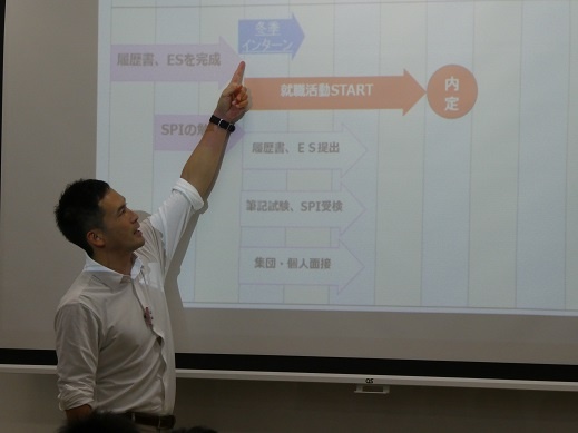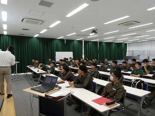 専攻科では、大学のキャリアコンサルタントを講師として配置し、生産現場のリーダーを育成すべくキャリアプランニングの授業を実施しています。 単なる就職活動の対策ではなく、自分自身を客観的に見つめ直し、今後どのように生きていくのかを問い続けることで、ものづくりに対して今まで以上に真摯に向き合うことを促しています。