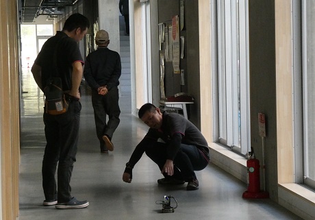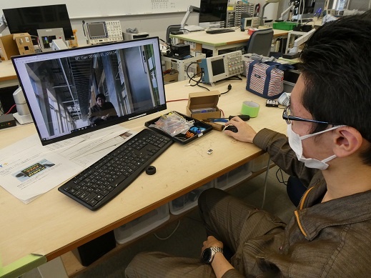 今日は2年生が総合実習でした。廊下に現れた動くもの・・・これは「超小型コンピュータ(RaspberryPi=ラズベリーパイ)で、遠隔制御」の実習です。RaspberryPiとは名刺サイズ大の基板に、パソコンを構成するハードウェアの大半が詰め込まれていて、HDMI、USB、LAN等のインターフェイスを利用することが可能なものです。これを使ってOSの組込みなど1から製作をして、6回目の今日、遠隔操作で防犯カメラの役割を持つ車両を走らせたということです。
