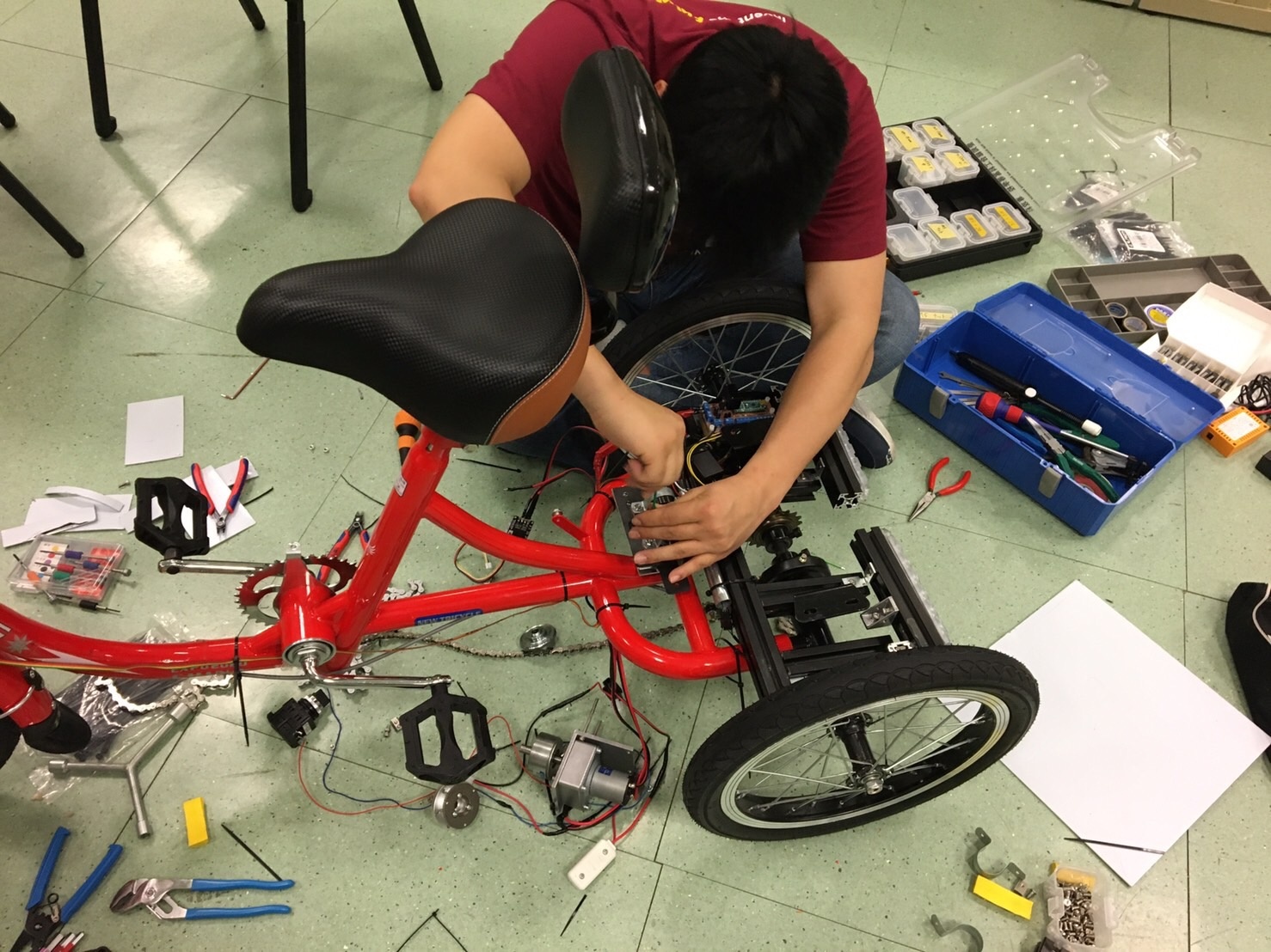 生徒とは毎日連絡を取り、無事を確認しています。今日は3人の写真とともに、「平日は作業を行って、週末はシンガポール観光をしています。フットペダルのスイッチがまだうまく動いていないので、1つ1つ問題を解決して残りの約1週間で完成できるように乗り切りたいです」というお知らせが届きました!現地で元気に頑張っている様子です。