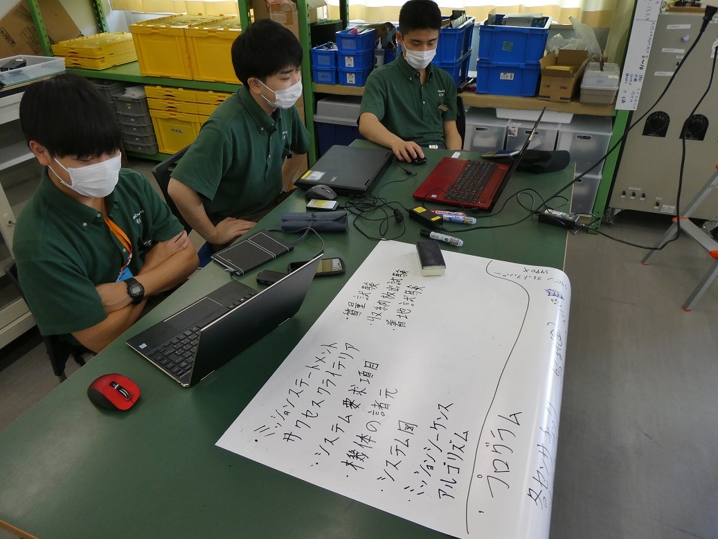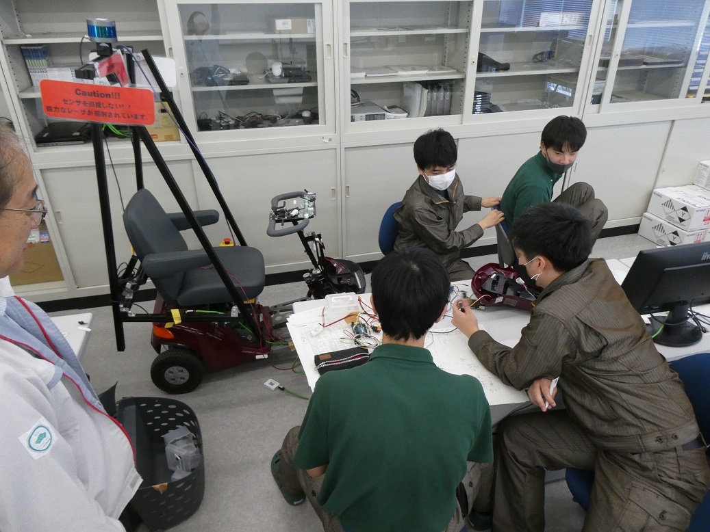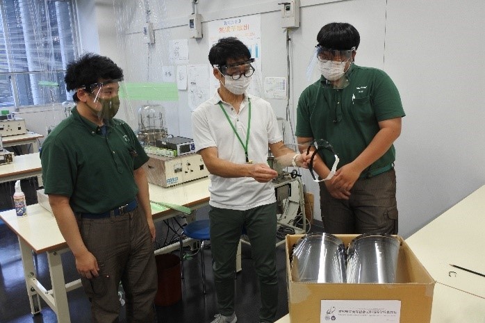 また専攻科の指定管理法人である名城大学へ、総合実習の活動の一環として専攻科の3Dプリンタなどを使って製作したフェイスシールドを寄贈しました。理工学部材料機能工学科の教員と学生に実験実習授業の際に着けてもらい、新型コロナウイルス感染症防止に役立ててもらいます。「学びを通じた社会貢献」の意味もあり、ものづくりを通して様々な人との繋がりを実際に感じられる機会となりました。2年生は総合実習を行いました。