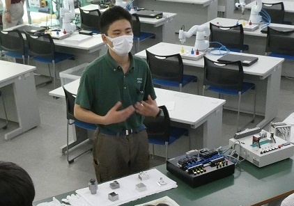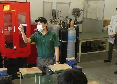 今日は令和2年度 第1回学校説明会が行われました。 生徒・保護者など131名と例年を上回る参加者数となりましたが、マスク着用や消毒を徹底しての案内となりました。 全体の説明のあと、在校生からの情報発信、施設・設備の見学及び実習体験、最後に入学試験や進路についての説明がありました。 2年生22名に協力してもらい、それぞれの実習や取り組んでいる活動について説明を行うことができました。正々堂々と活動を説明する姿がとても頼もしく見えました。