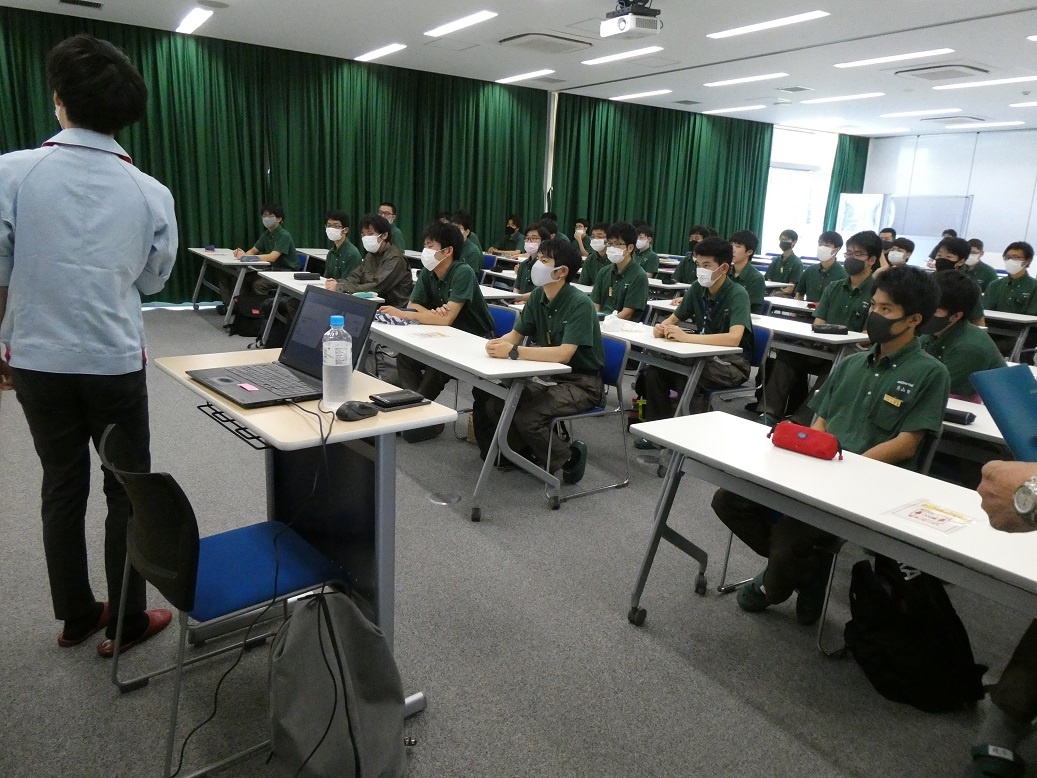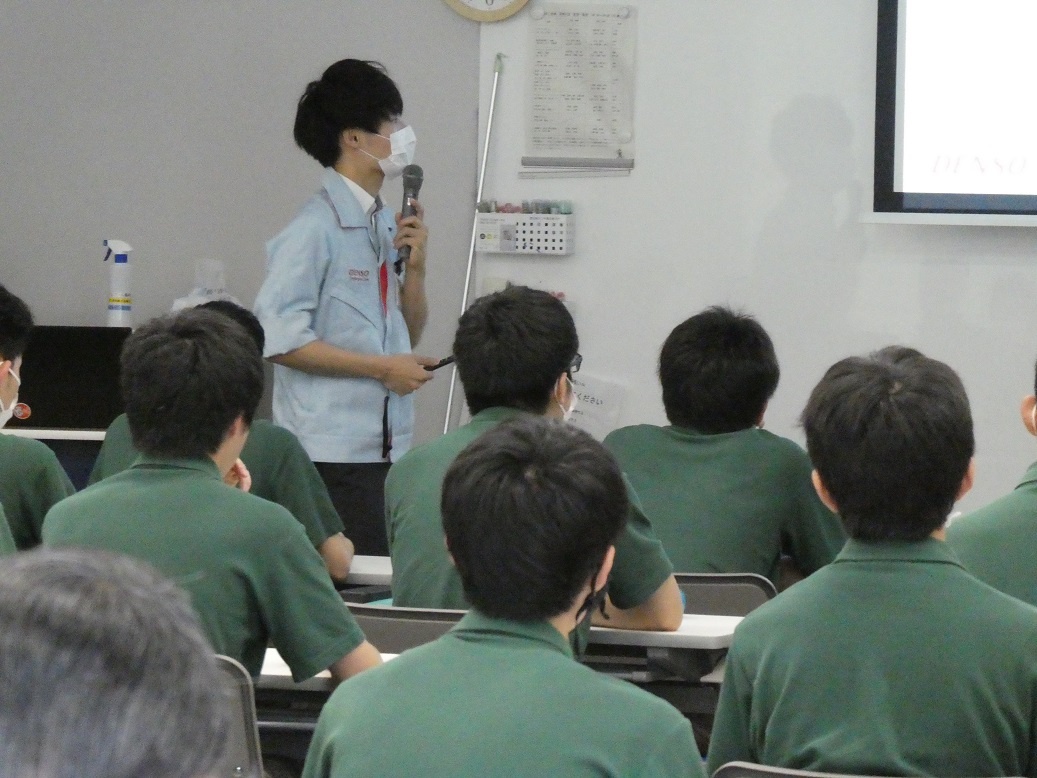 今日は、1年生対象に、本校のOBで株式会社デンソーにお勤めの北村さんによる講演会が行われました。北村さんは、本校の一期生で、同窓会会長もやっていただいております。本校在学中に経験した総合実習での苦労話、現在会社で求められていること、在学中に勉強しておいて欲しいことなど、OBだからこそ分かる話を、沢山聞かせてくださいました。とっても貴重な体験が出来たと思います。