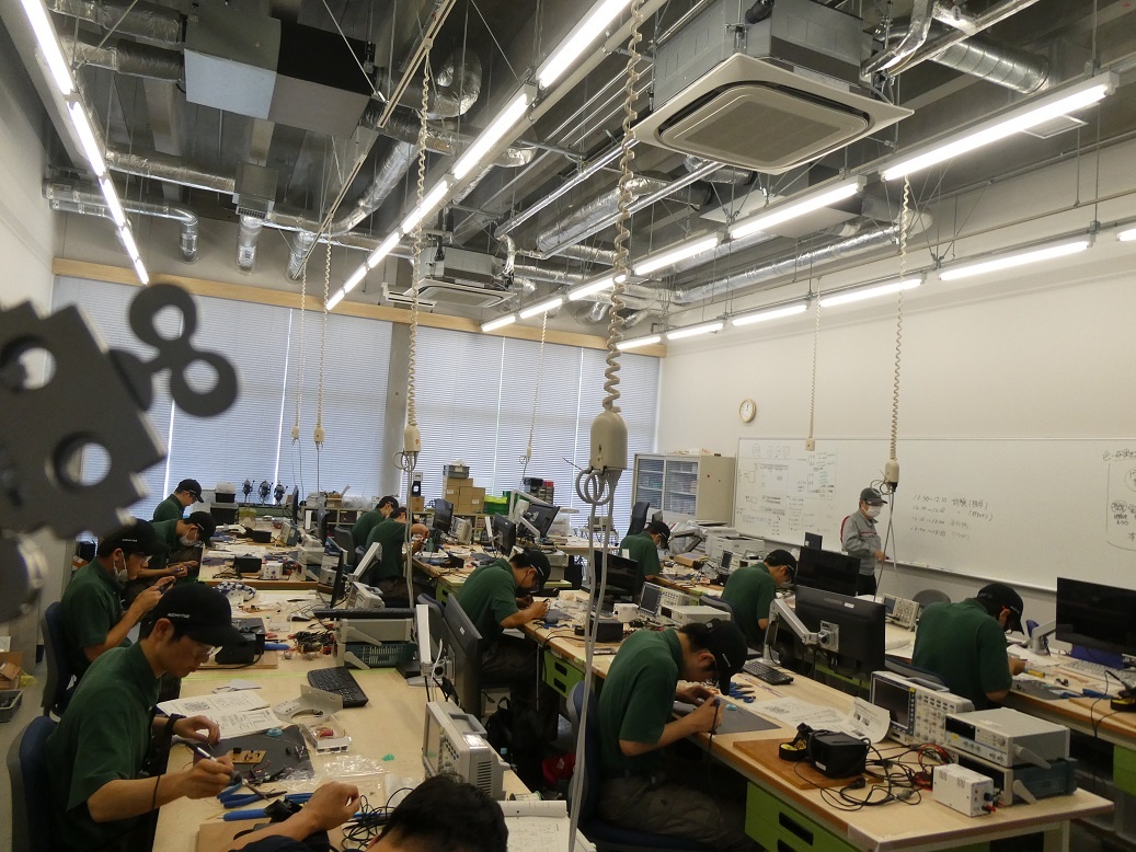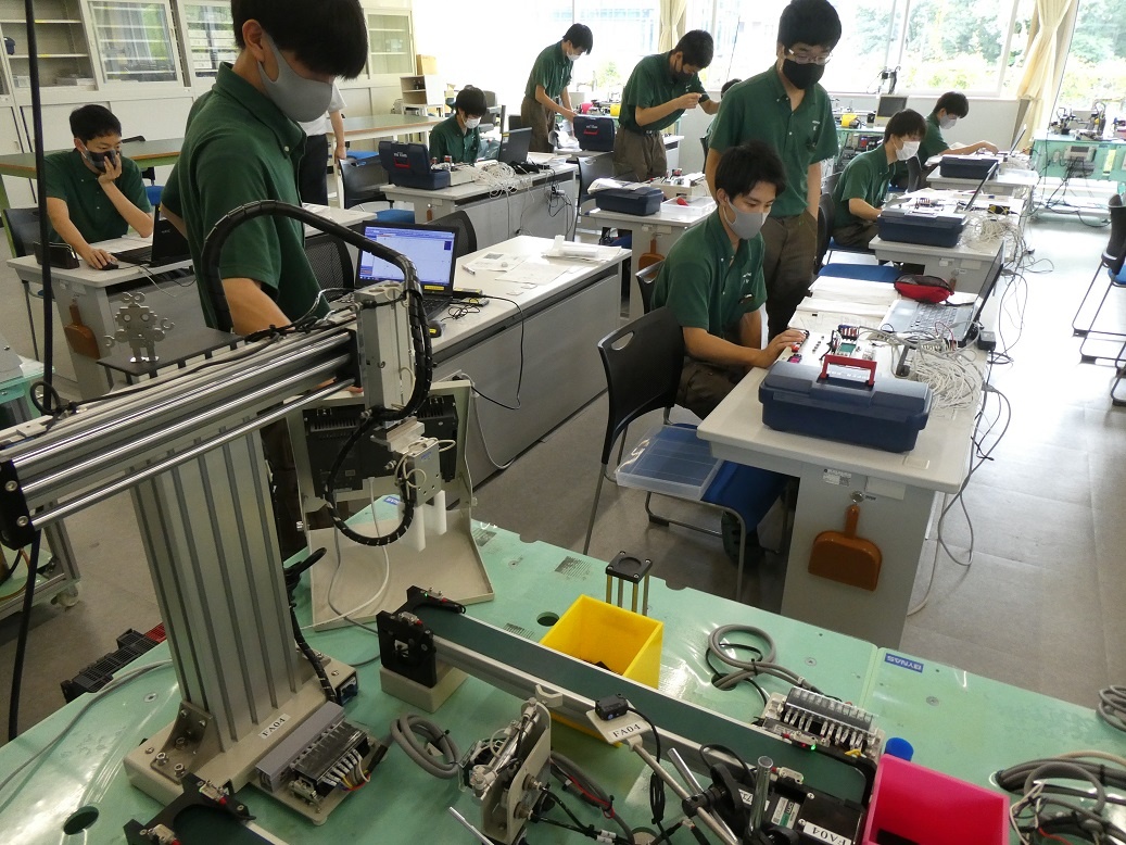 今日は1年生が6回目のコース実習でした。生産システムコースではシーケンス応用命令について、情報システムでは電子機器組立の検定練習、自動車・航空産業コースでは旋盤/溶接、エネルギー産業コースは校外実習へ行きました。 また、午後からはIT工学科立ち上げに伴う技術指導会が開催されました。
