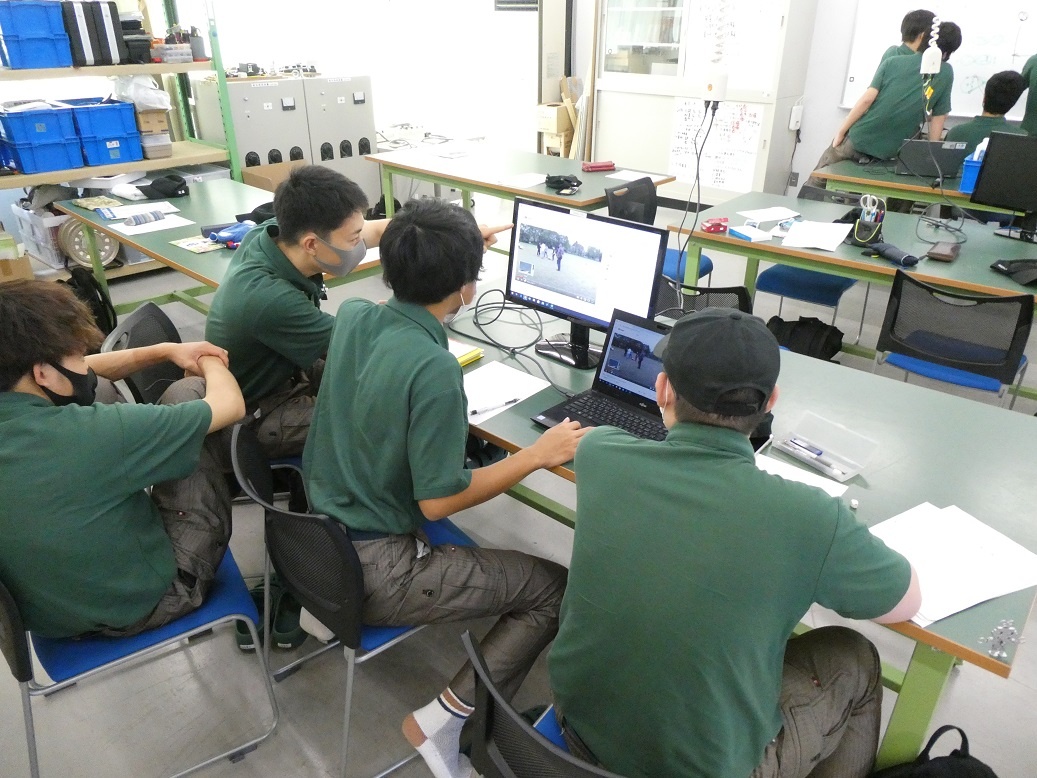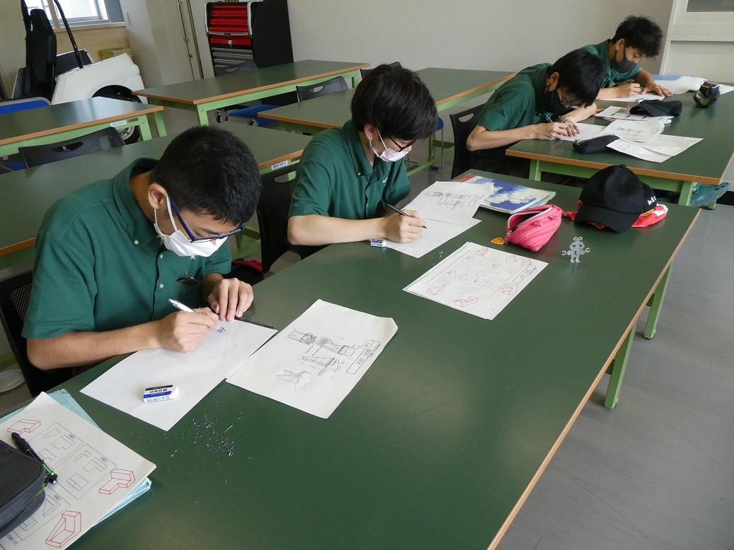 今日は1年生が総合実習でした。 8月には秋田県にて「ワールドグリーンチャレンジ ソーラーバイシクルレース」(エコモビリティ技術・再生可能エネルギーの研究と実践1)、11月には東京都にて「GPS・QZSSロボットカーコンテスト」(衛生測位(GPS)によるロボットカー制御の研究と実践)など、それぞれの目標に向かって活動に取り組んでいます。