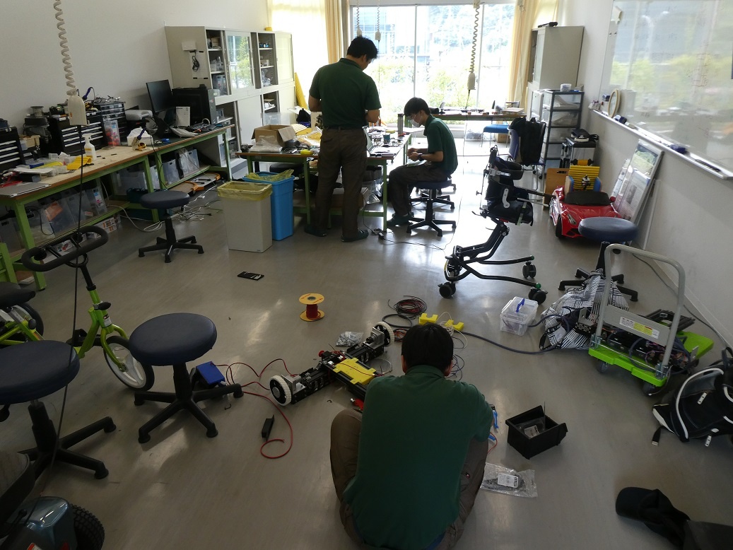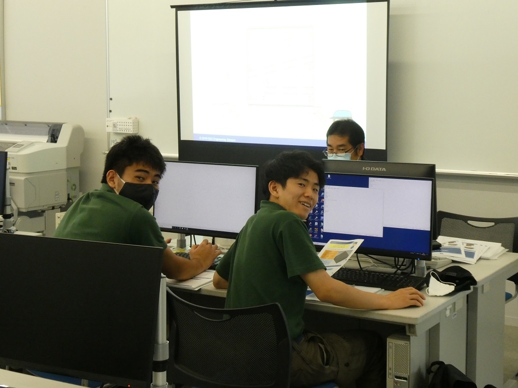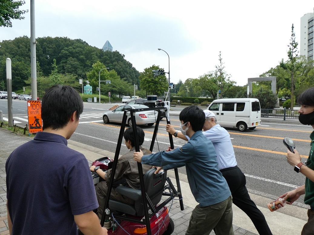 今日は2年生が総合実習でした。「自動運転支援用プレビューセンサー開発と実践Ⅱ」のテーマでは、学校から東山動物園の交差点まで往復し、自動運転に必要な3次元地図の取得方法を実習しました。 (注)車両は手押しで動かしています。