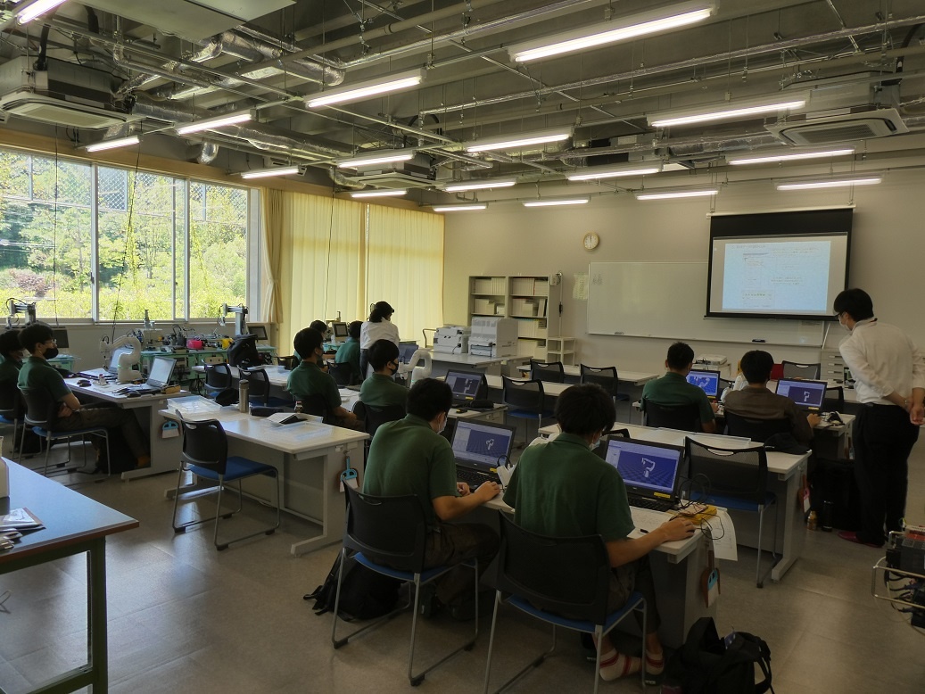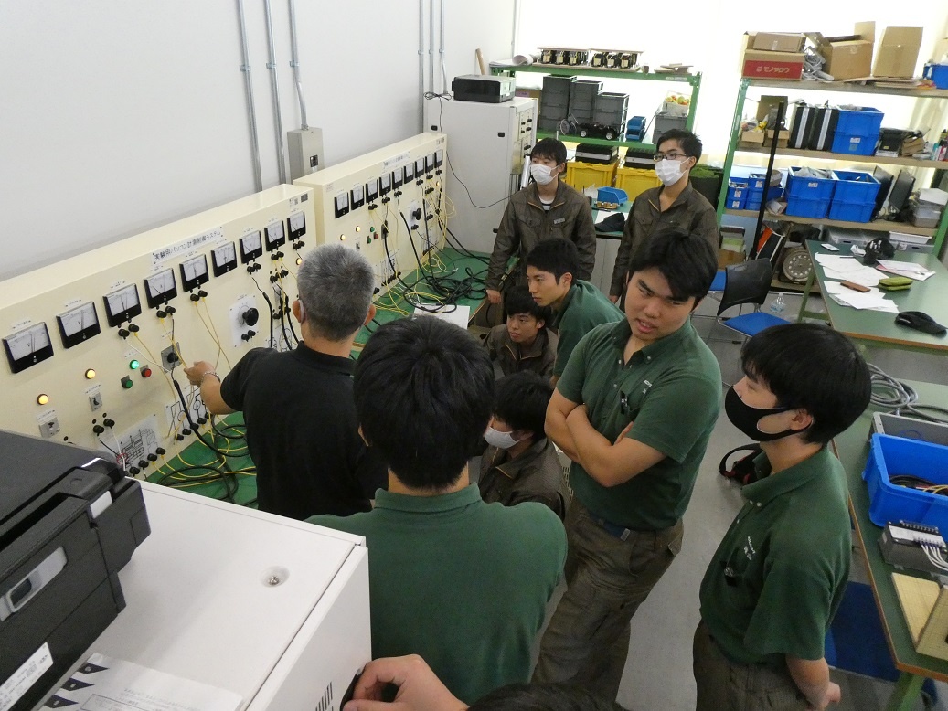 今日は2年生がコース実習でした。 生産システムコースは「マシニングセンタ5軸Ⅱ(加工・加工理論)」、情報システムコースは「マイコン制御応用(LCD)」、自動車・航空産業コースは「ロボット特別教育(知識・実技)」、エネルギー産業コースは「発電機(同期機試験)」について、それぞれ取り組みました。
