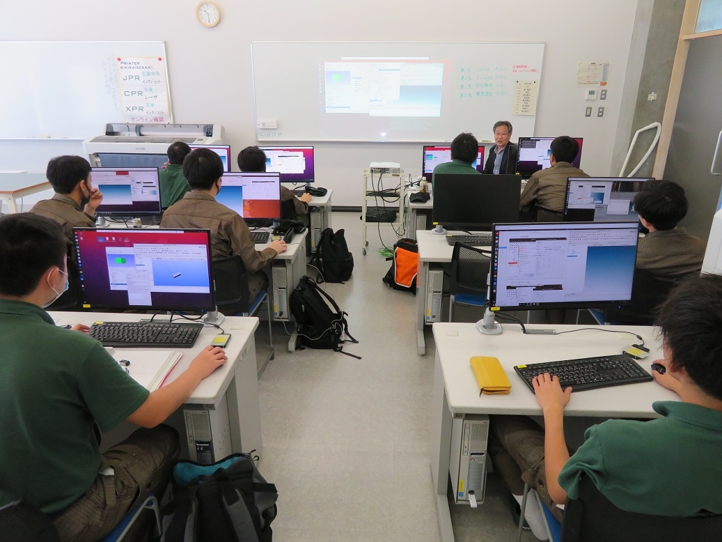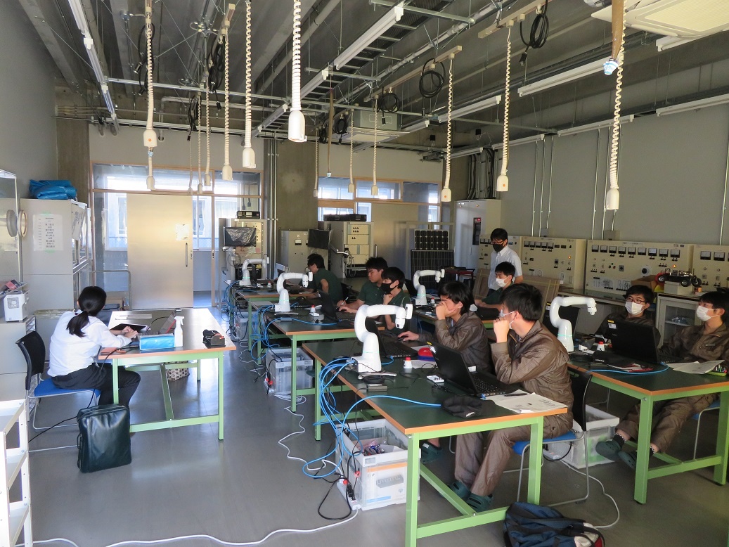 専攻科では今日から後期授業が始まりました。 雲ひとつ無い秋晴れのもと、1年生は5限まで座学を、2年生はコース実習(生産システム「FA設備制御1」、情報システム「LINUXシステム」、自動車・航空産業「CAE解析Ⅱ」、エネルギー産業「ロボット特別教育」)がそれぞれ行われました。 2年生は残り半年、色々なことを経験して欲しいと思います。