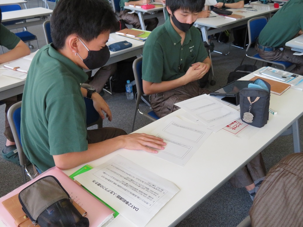 今日は技能五輪のトヨタグループ合同訓練会「旋盤職種」では、競技が行われていました。見学をした生徒たちは、その場の空気感や技術力を感じ、積極的に質問をする姿もみられました。 2回目となる1年生「キャリアプランニング」では、事前課題「人生グラフ」をもとにランダムでペアとなり、お互いのインタビューを行いました。「成功要因、強み、価値観など」インタビューを通して気づいたことを次回は「他己紹介」します。
